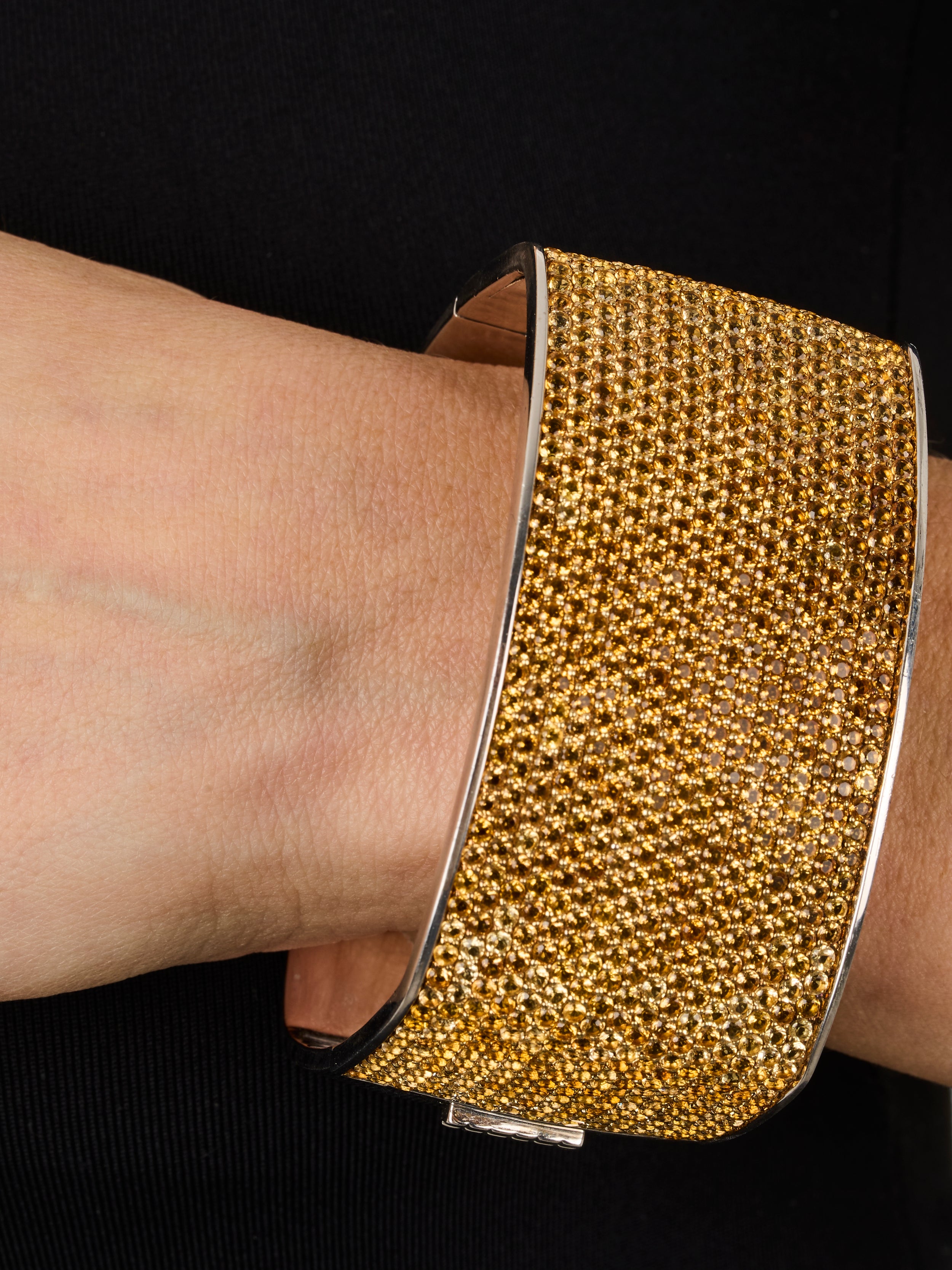 1qty NEW / Argent Rhodié Bracelet rigide sur argent rhodié serti de taille brillant citrine 29 // RECO : 1950€