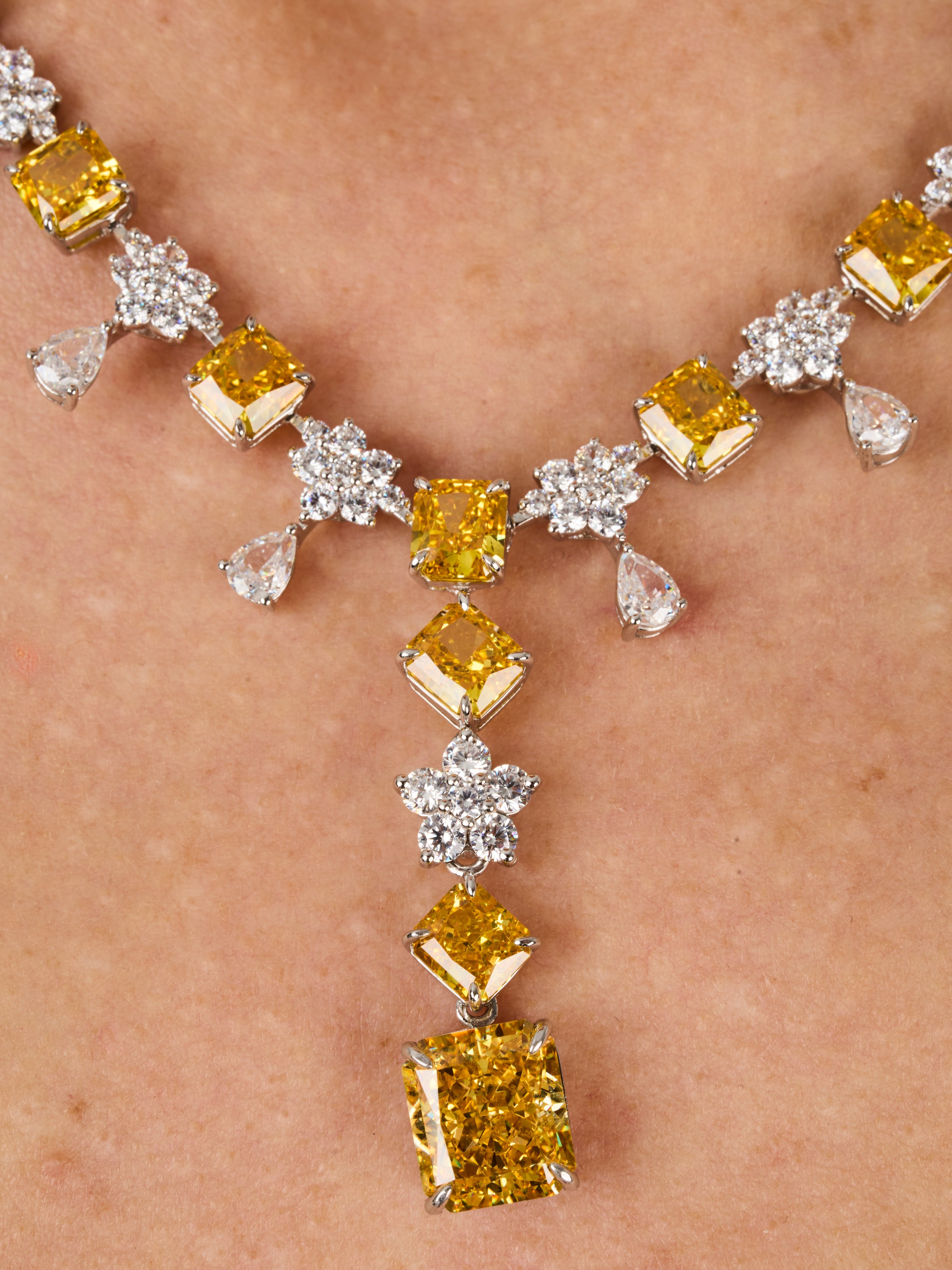 1qty NEW / Argent Rhodié Collier argent rhodié serti de Burmalite taille émeraude jonquille et Burmalite blanche // RECO : 962€