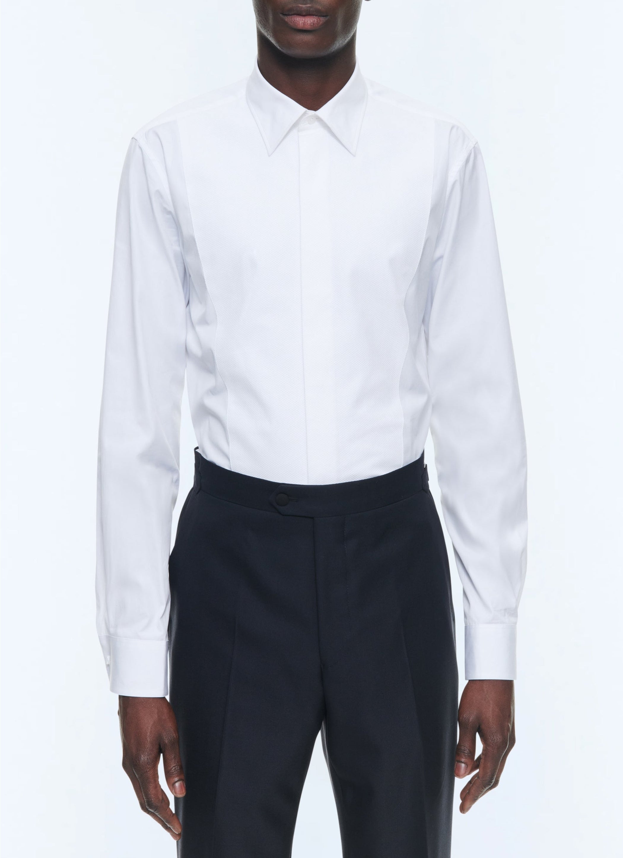 Chemise ajustée à plastron nid d'abeille en popeline de coton.