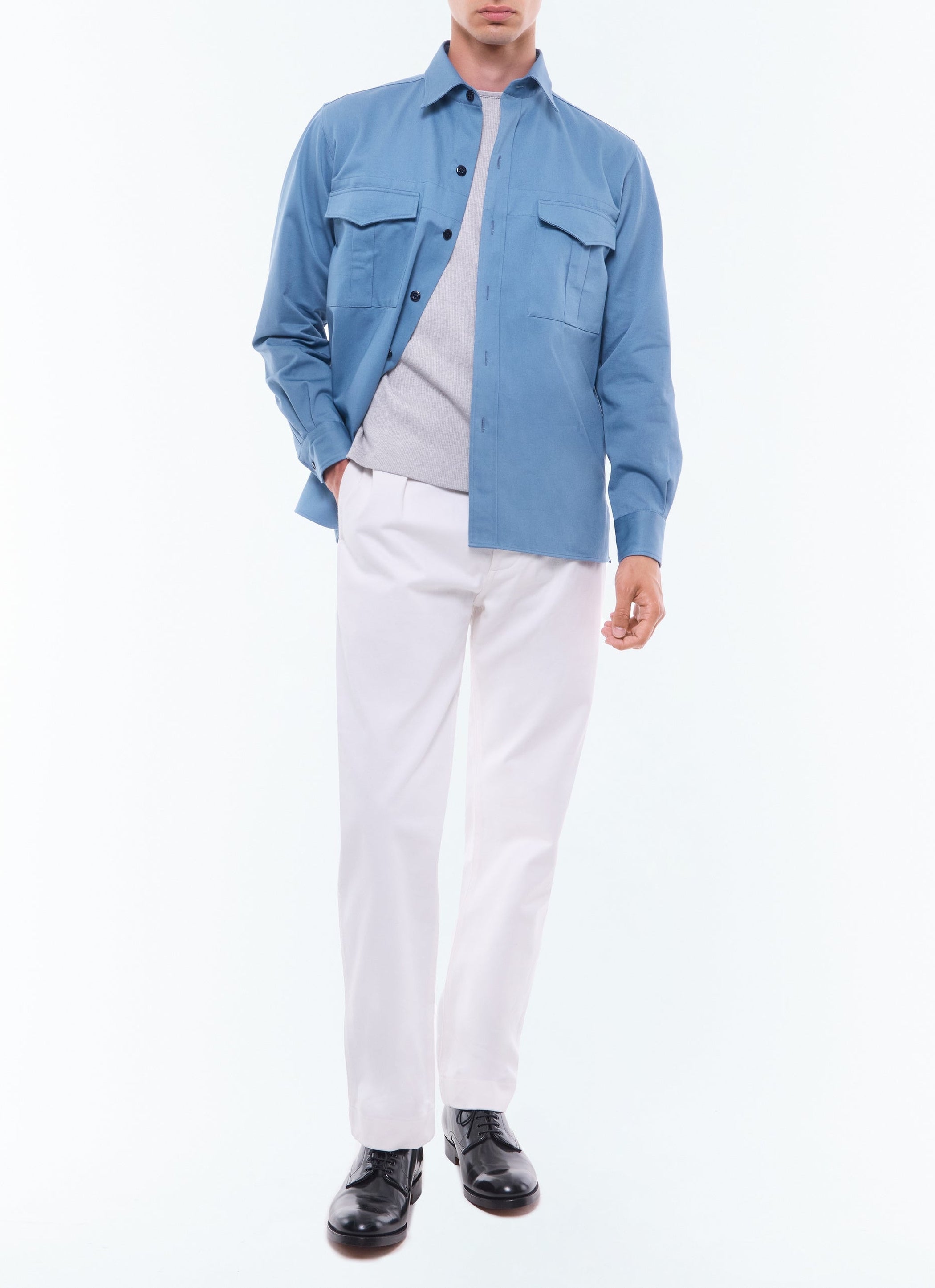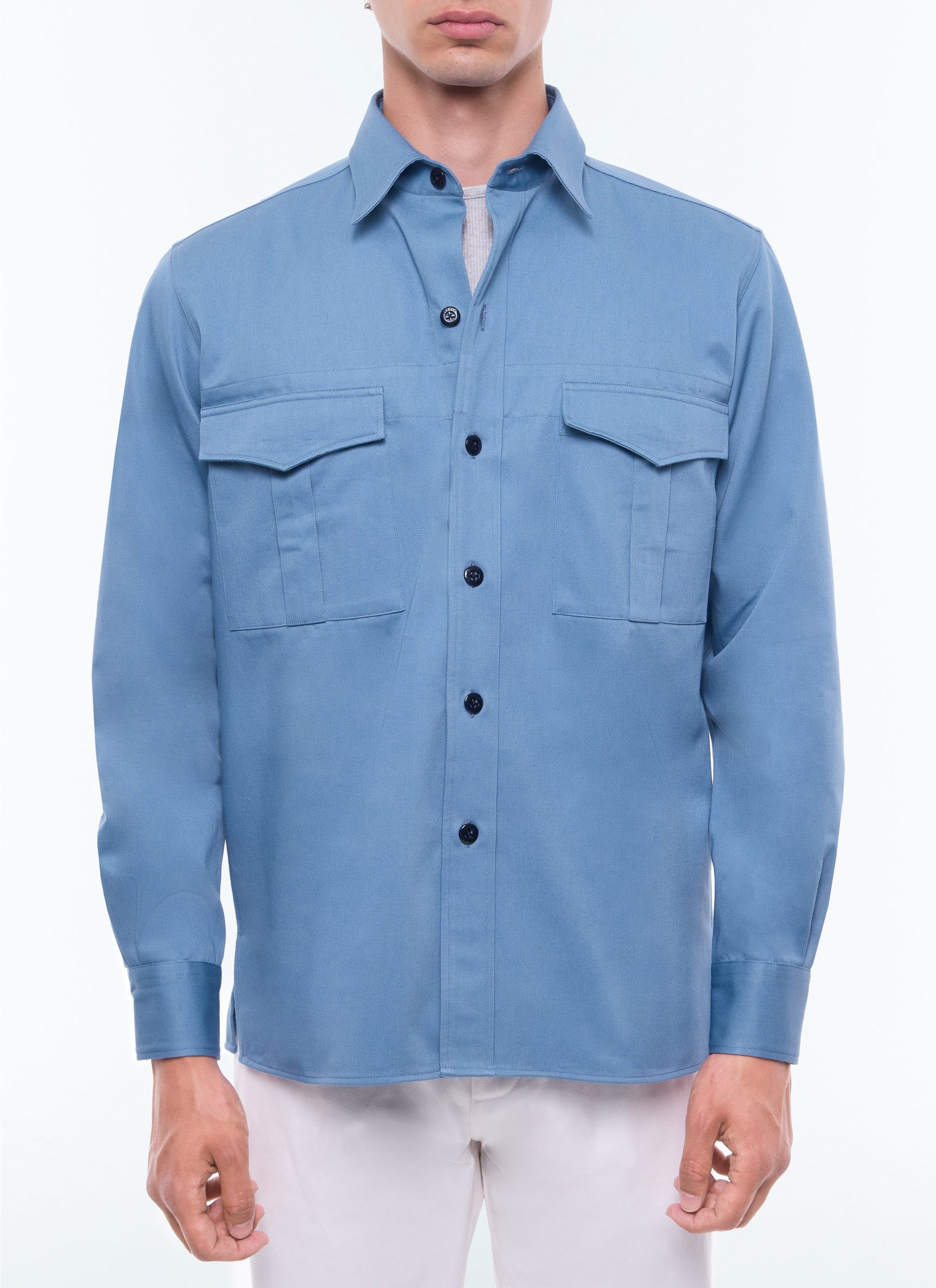 Surchemise à col hirondelle en twill de coton.
