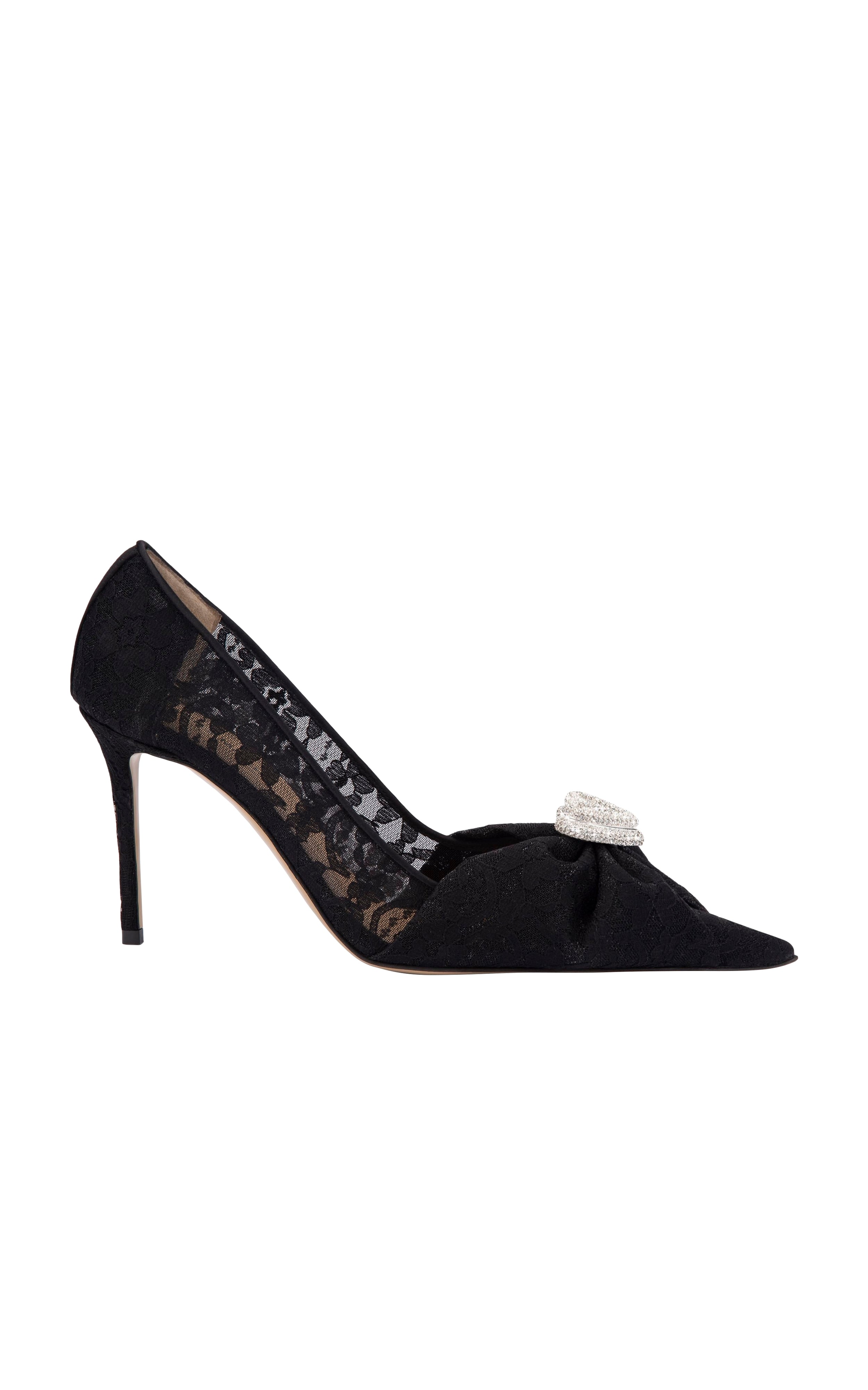 Escarpins Double Heart à strass d'une hauteur de talons 9,5 cm, confectionnés en Italie.