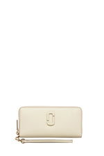 Un portefeuille continental en cuir lisse avec le sceau J Marc recouvert emblématique. Ce portefeuille pratique est doté d'une fermeture à glissière sur le dessus et d'une dragonne en cuir amovible pour un style décontracté. Il comprend douze fentes pour cartes à l'intérieur, un compartiment pour billets, une poche à monnaie à fermeture à glissière et deux poches extérieures.