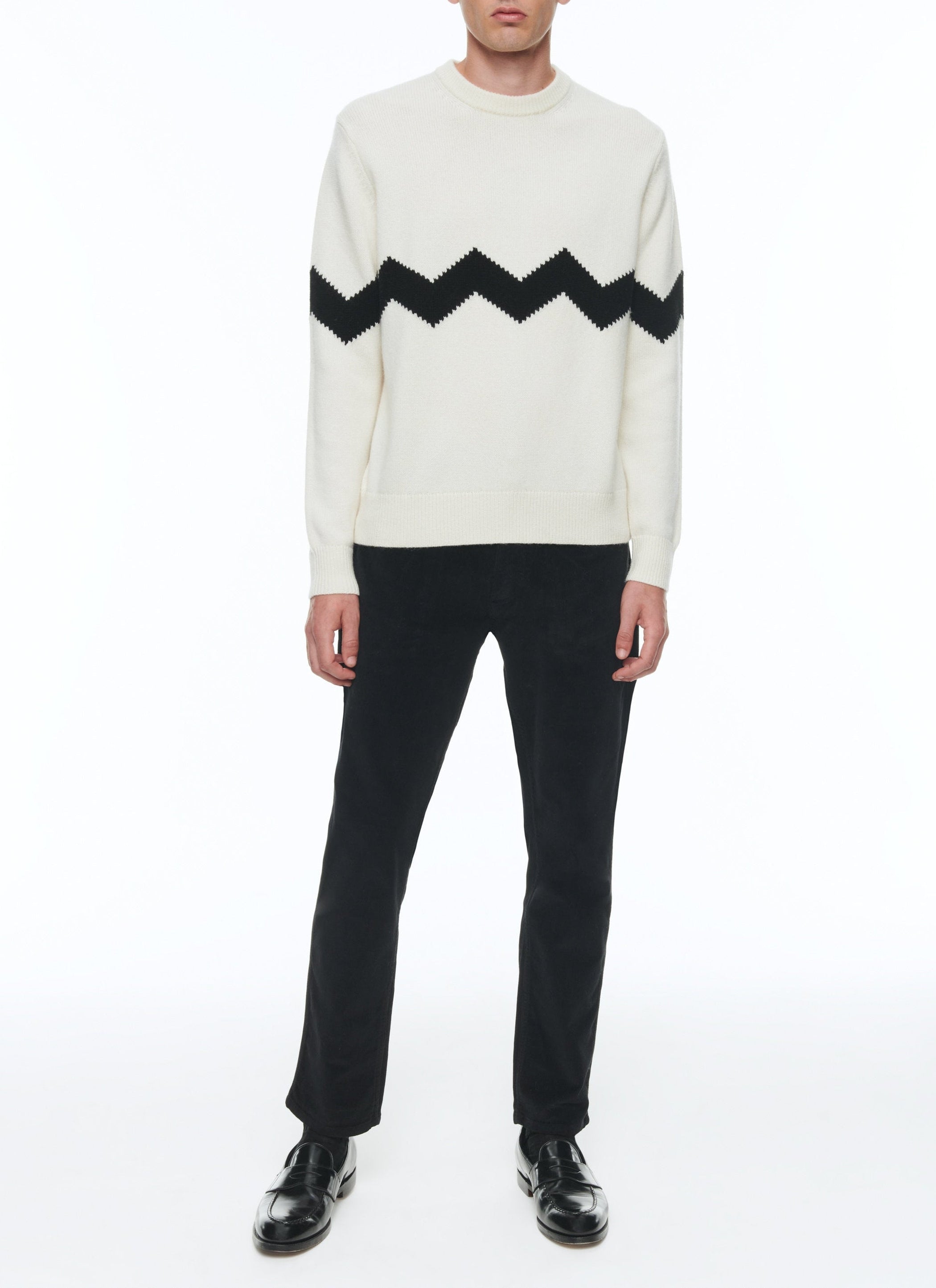 Pull à col rond en laine et cachemire.