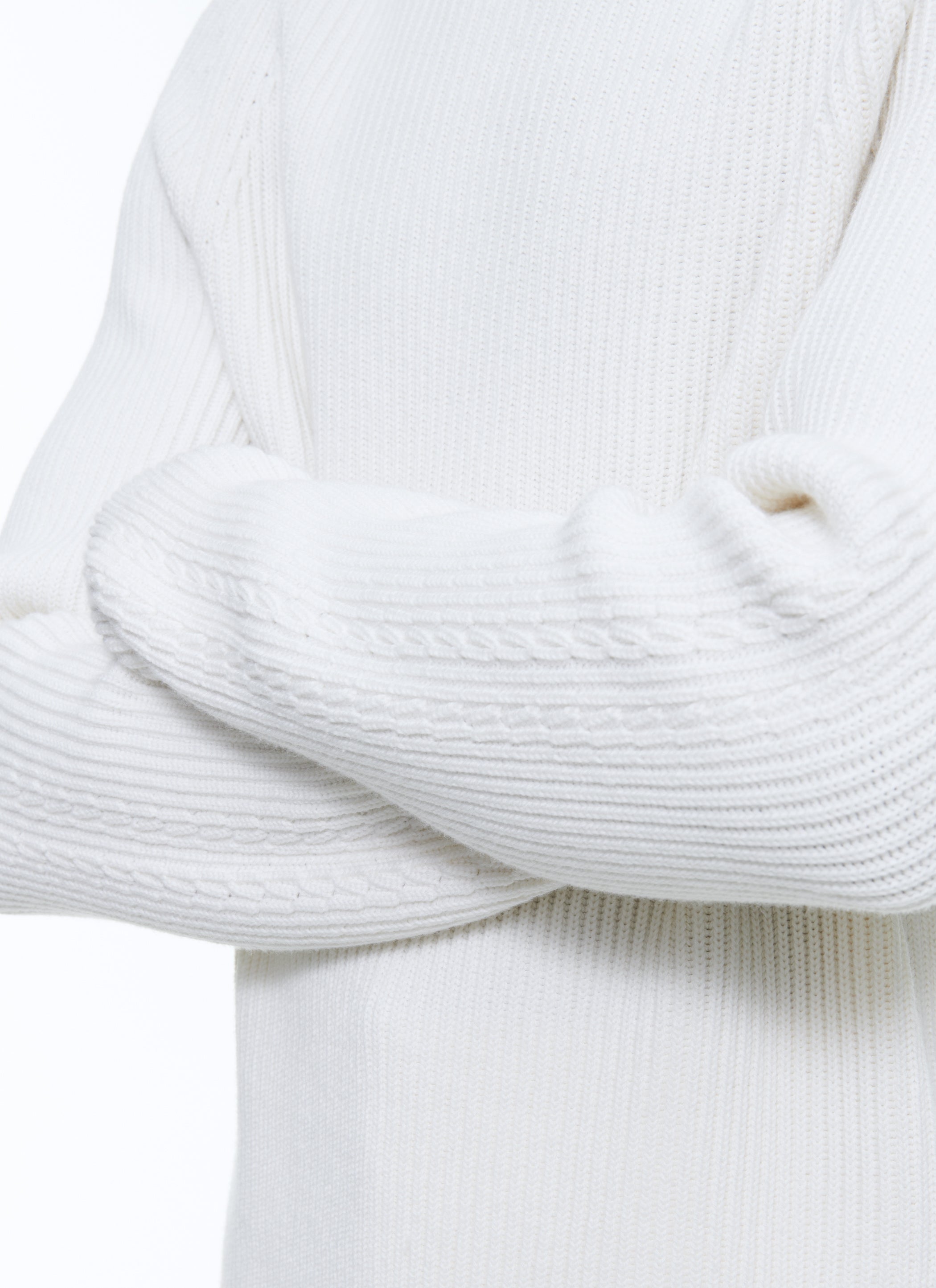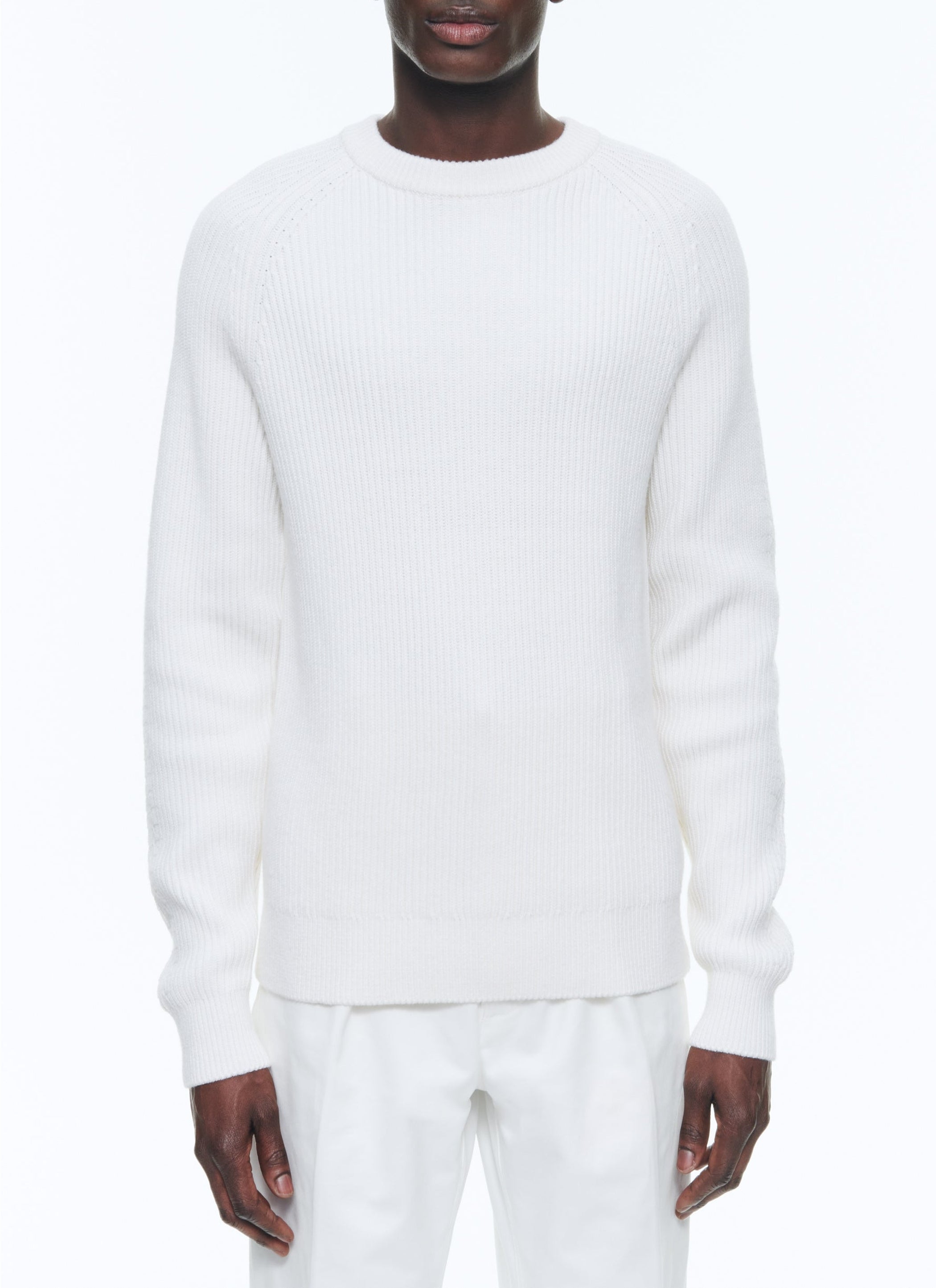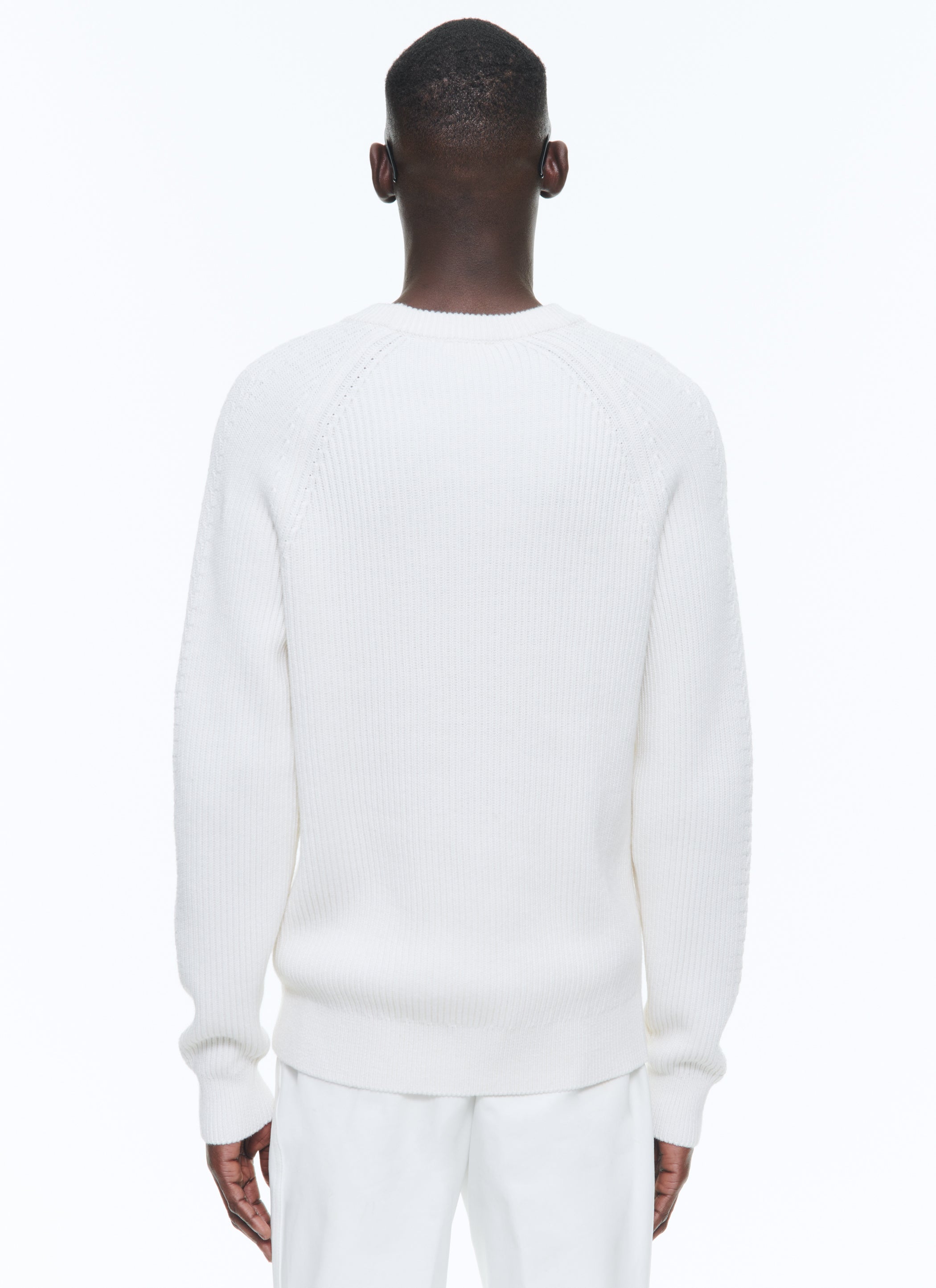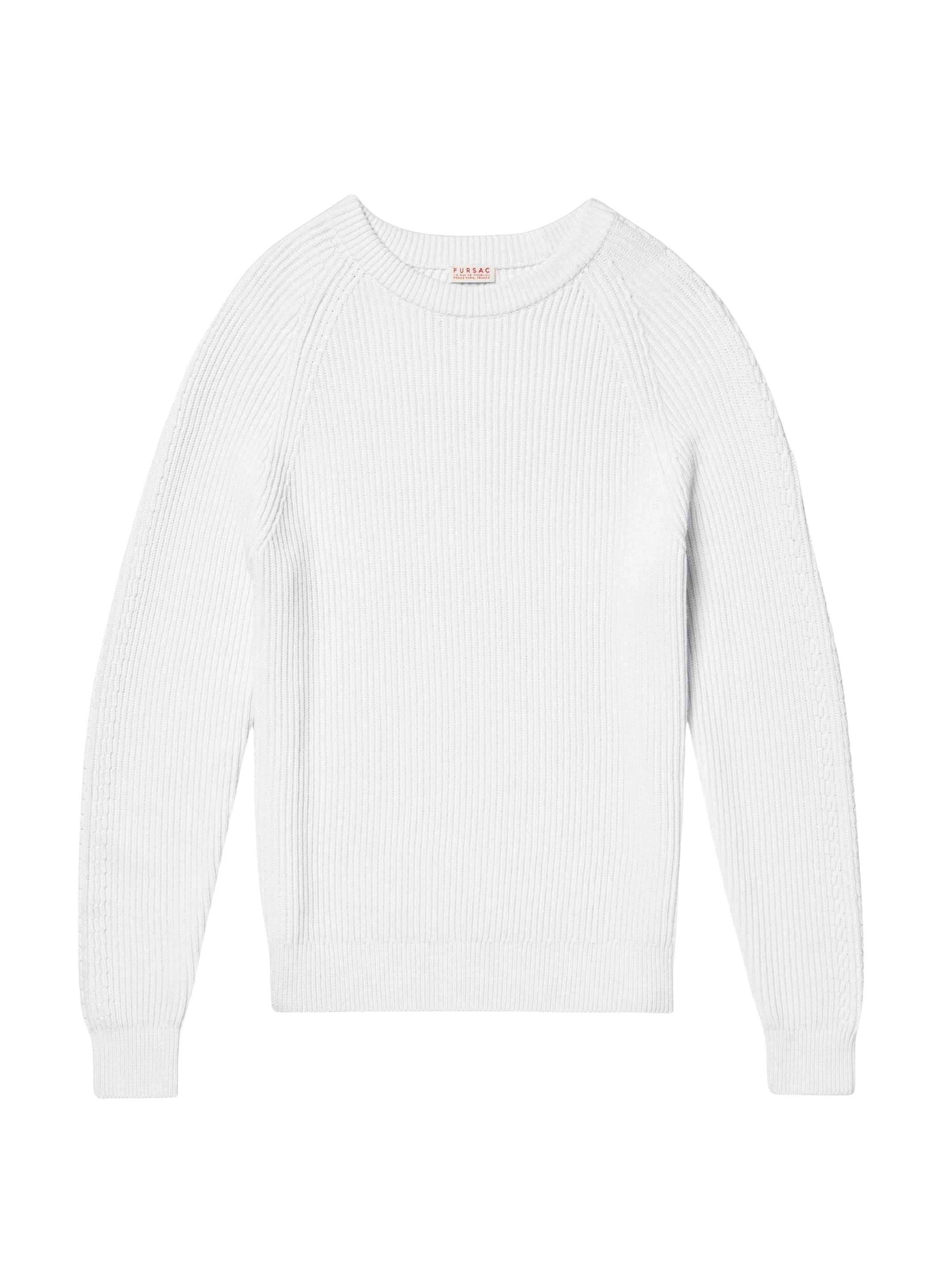 Pull côtelé en coton et laine.