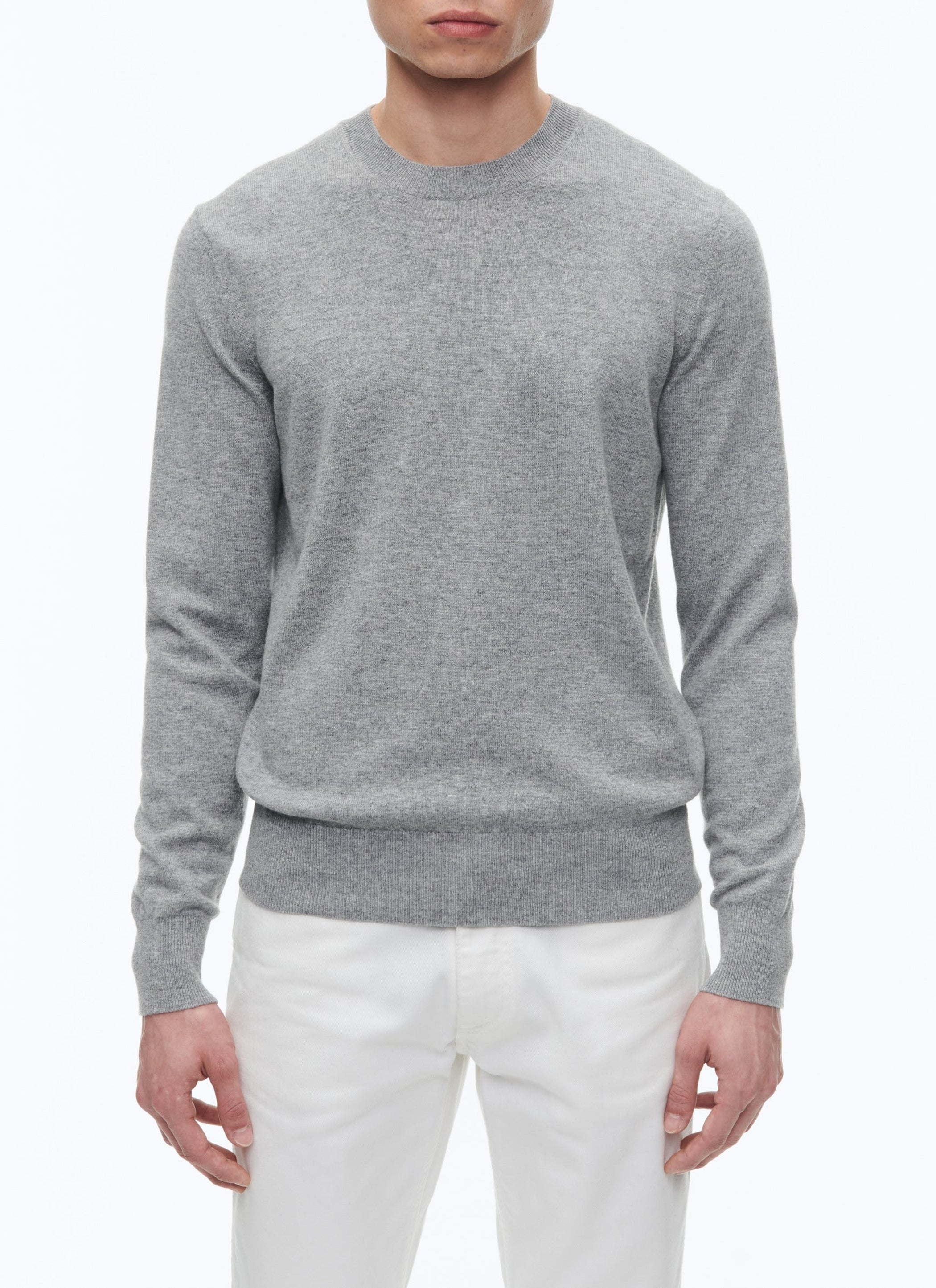 Pull col rond à maille fin en laine et cachemire.