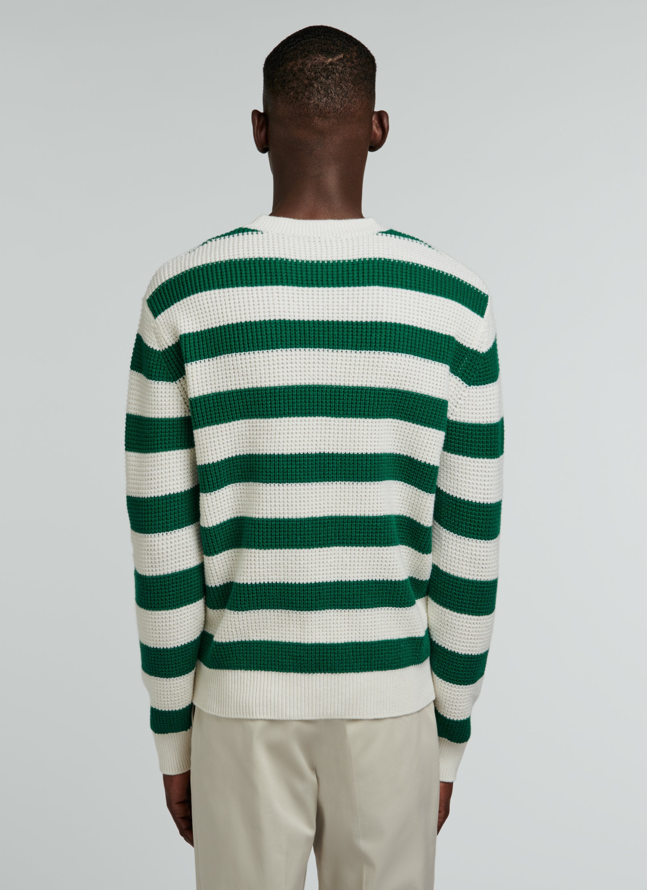 Pull à rayures en laine à maille épaisse et point de riz.