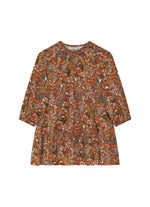 Chemise à fleurs dans des tons jaunes, bleus et bordeaux sur une base beige caramel.