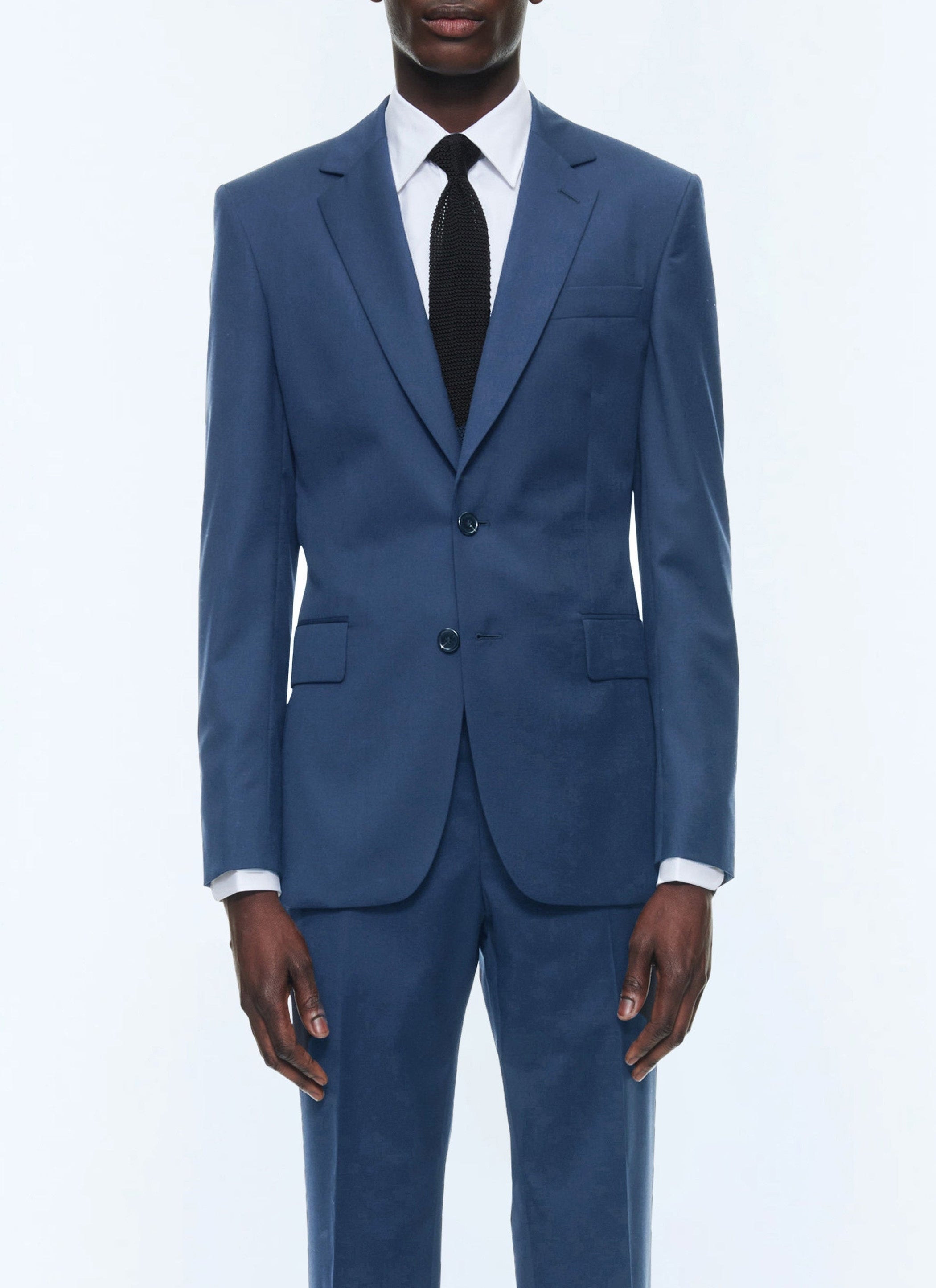 Montée en confection semi-traditionnelle dans une laine vierge bleu saphir, cette veste ajustée joue l’équilibre entre structure et souplesse.