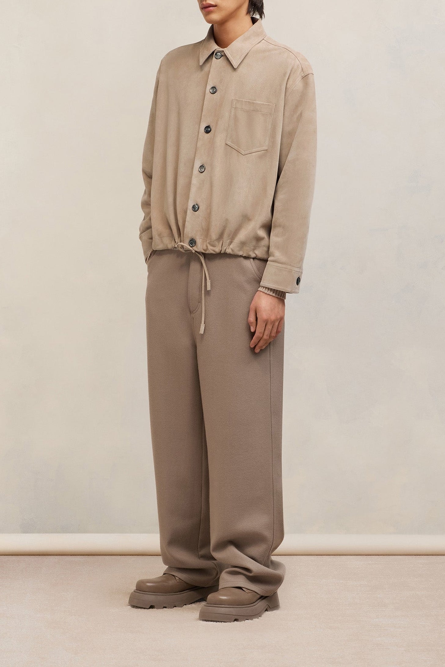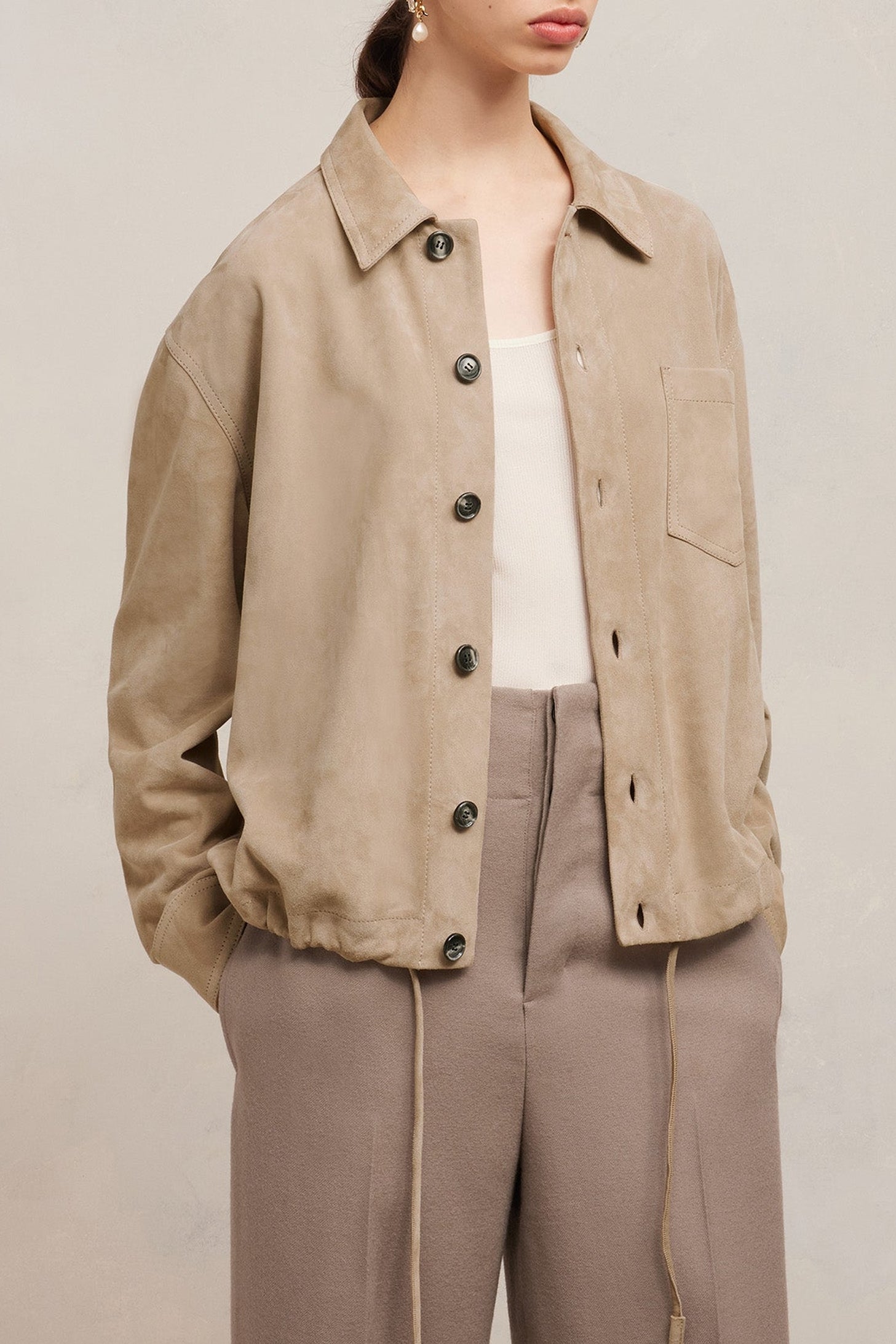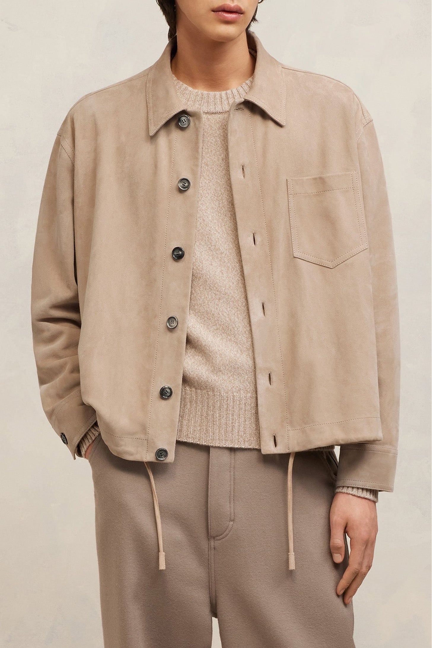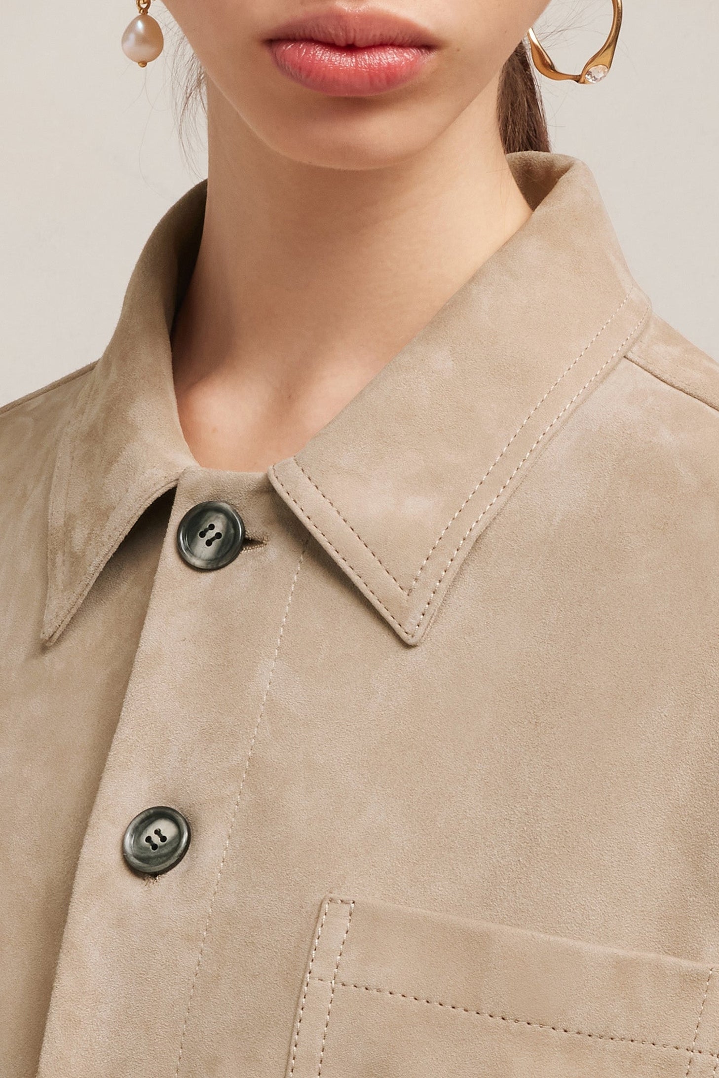 Surchemise boutonnée en cuir suède de chèvre.