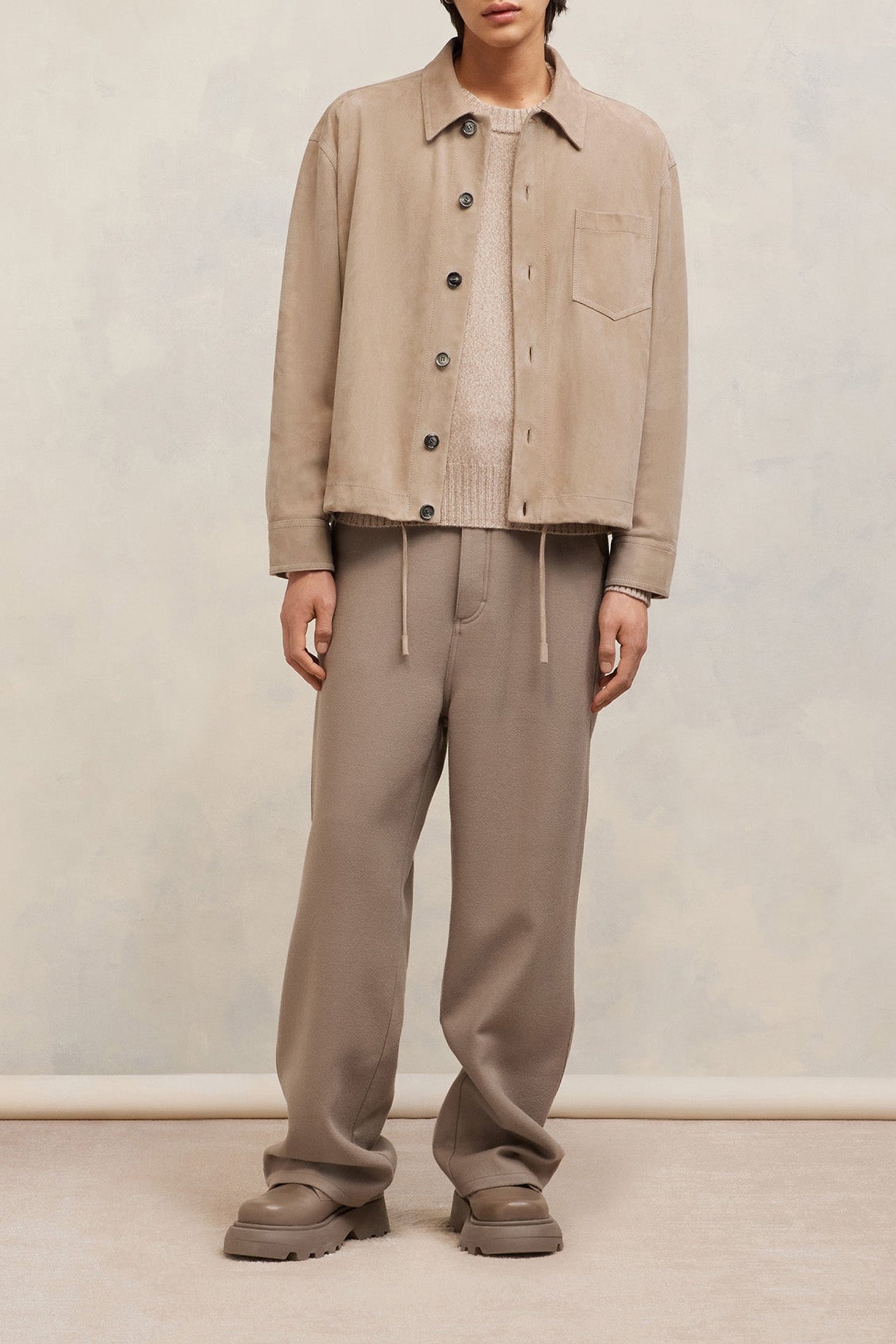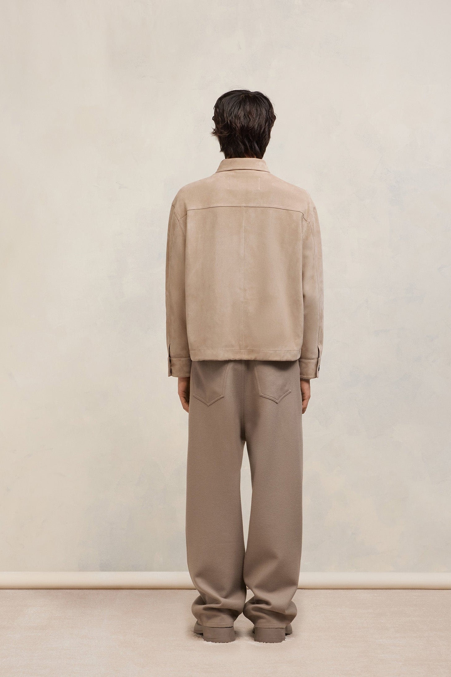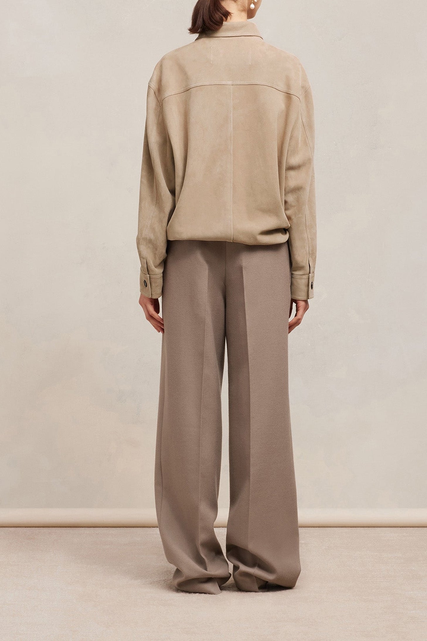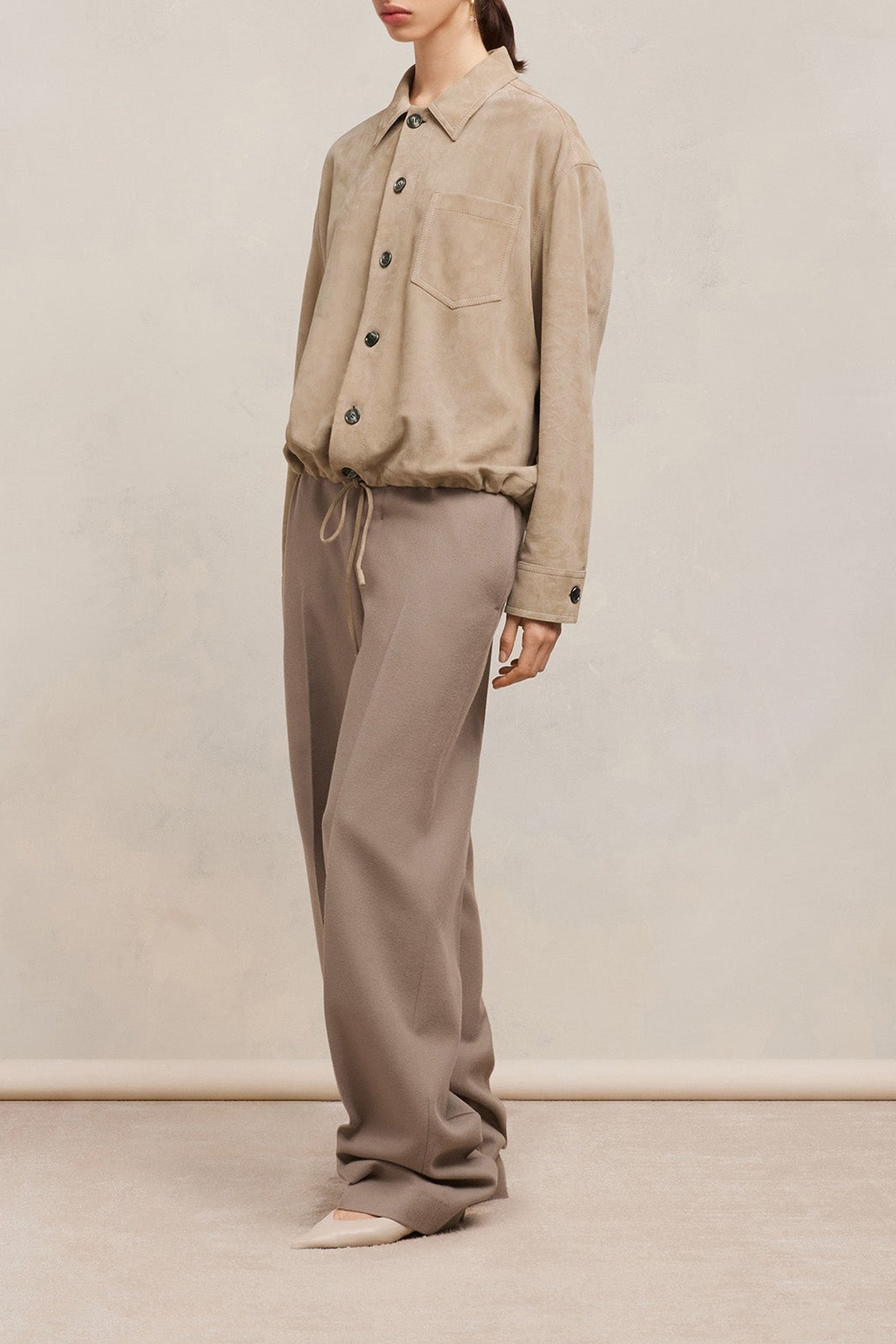 Surchemise boutonnée en cuir suède de chèvre.