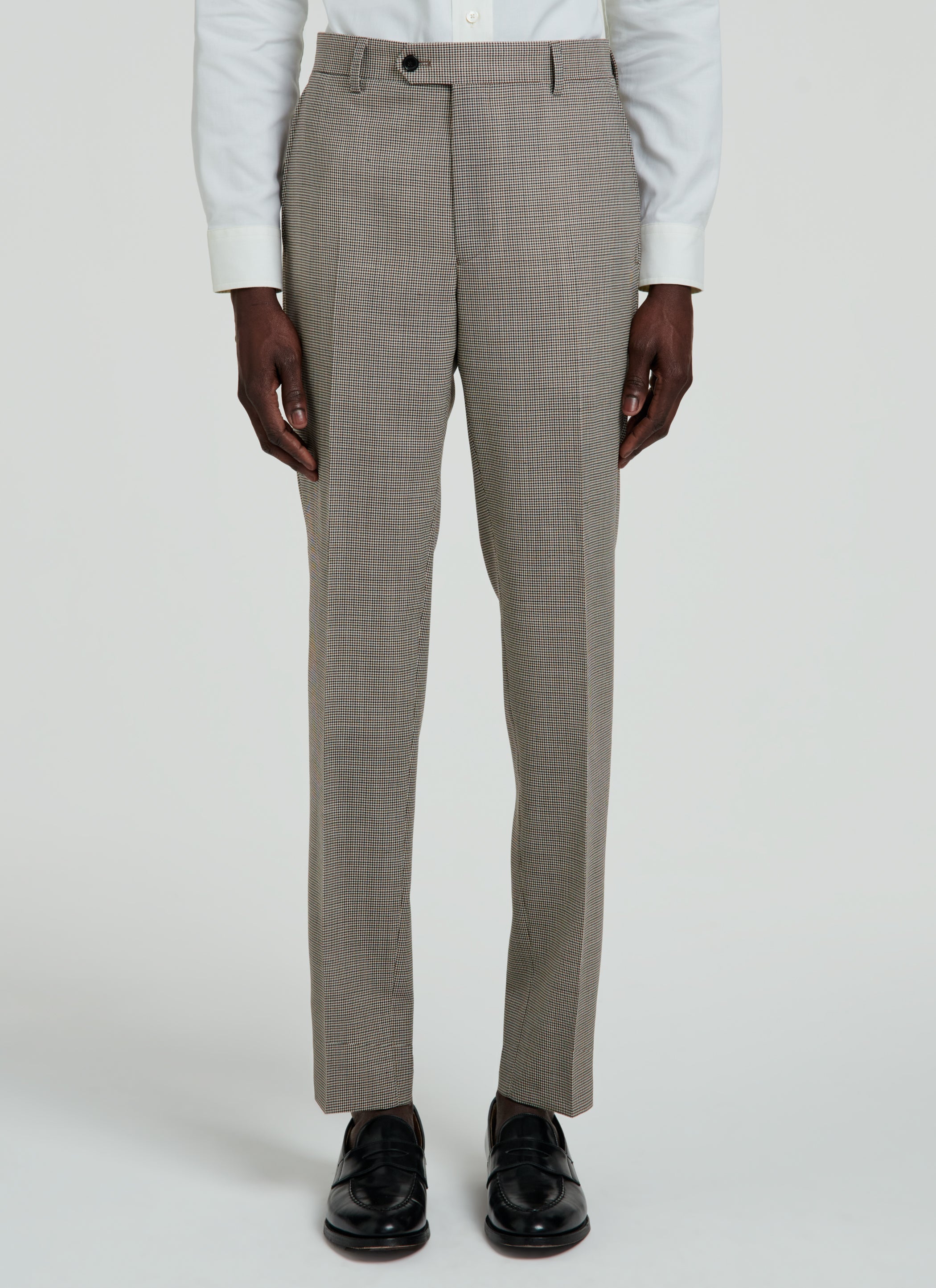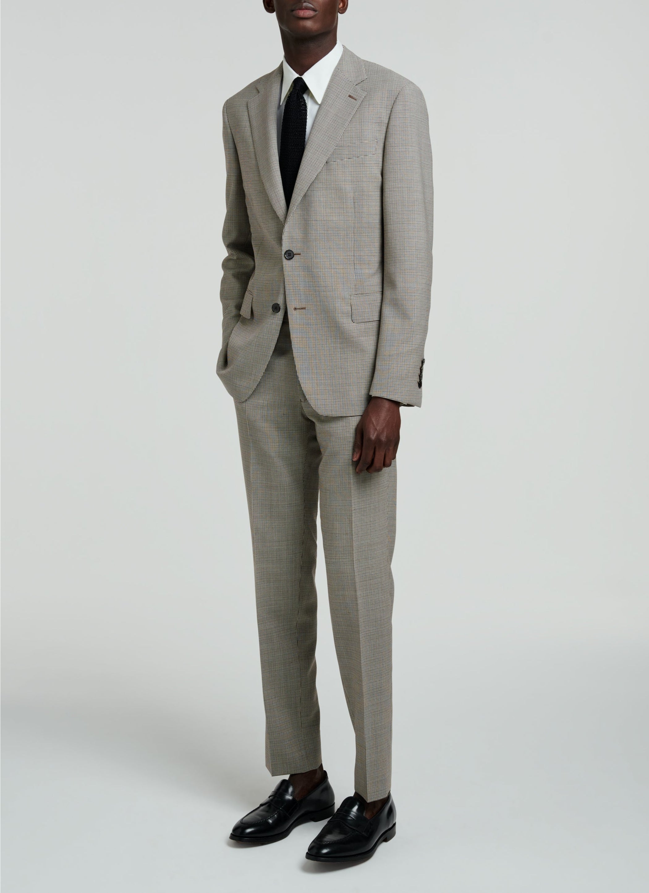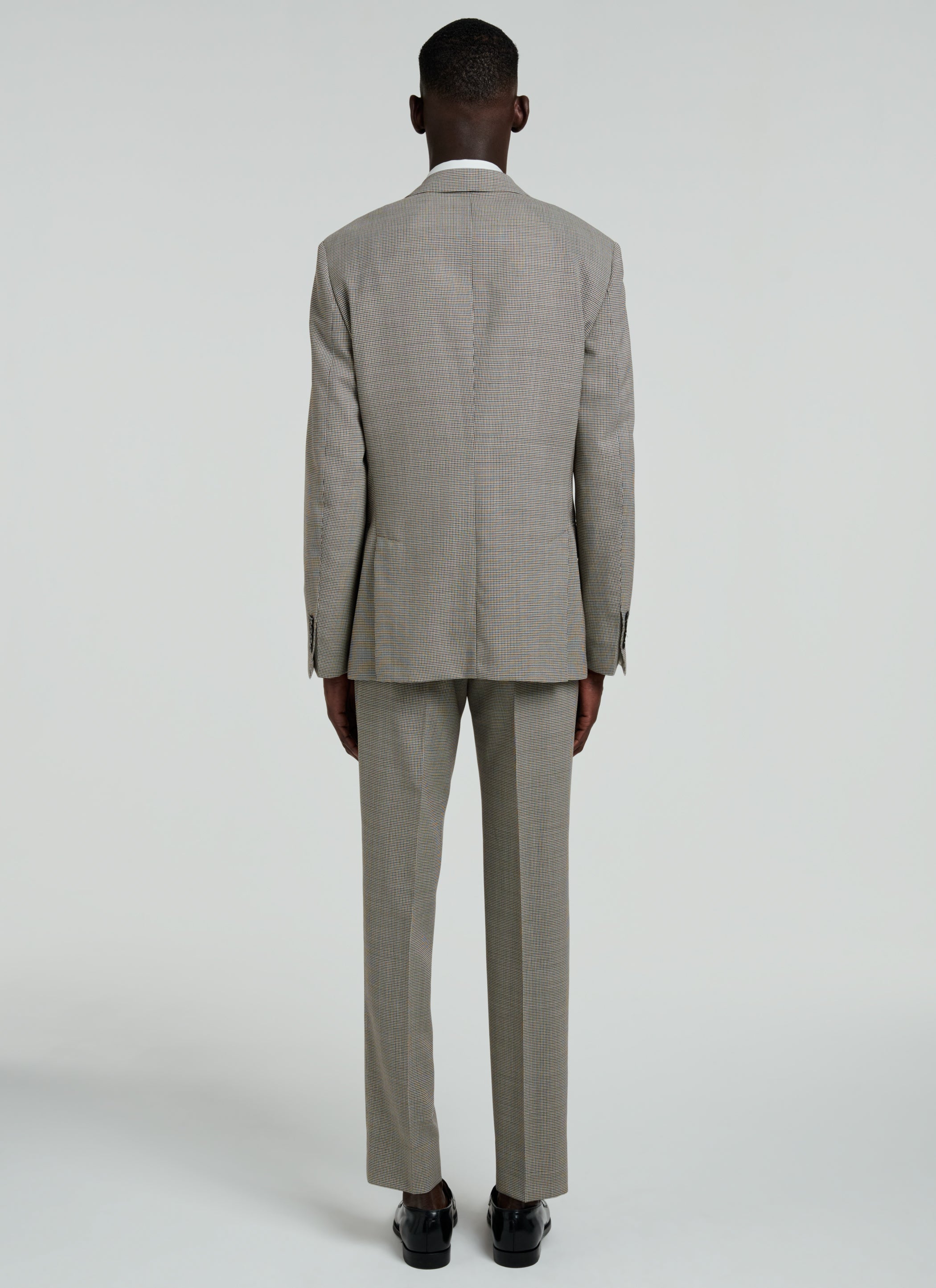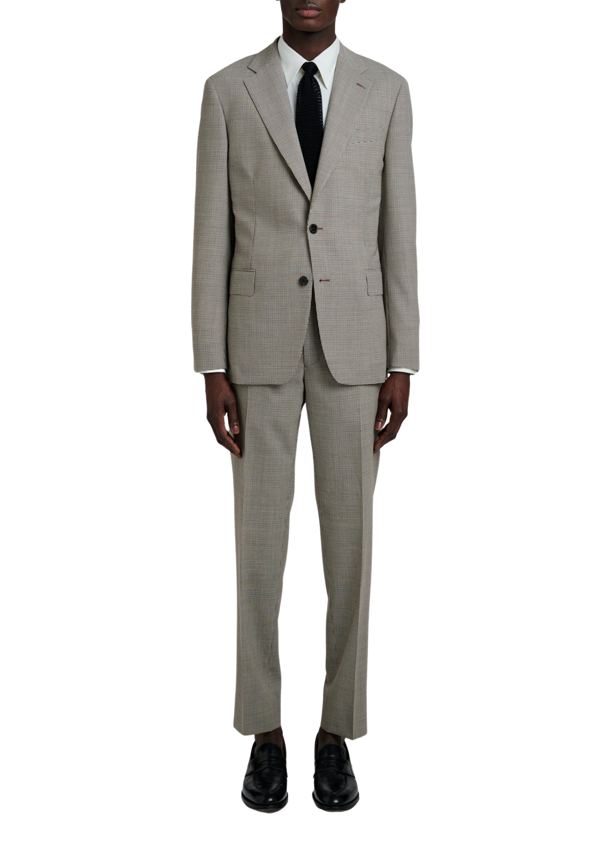 Costume en natté de laine à motif pied de poule