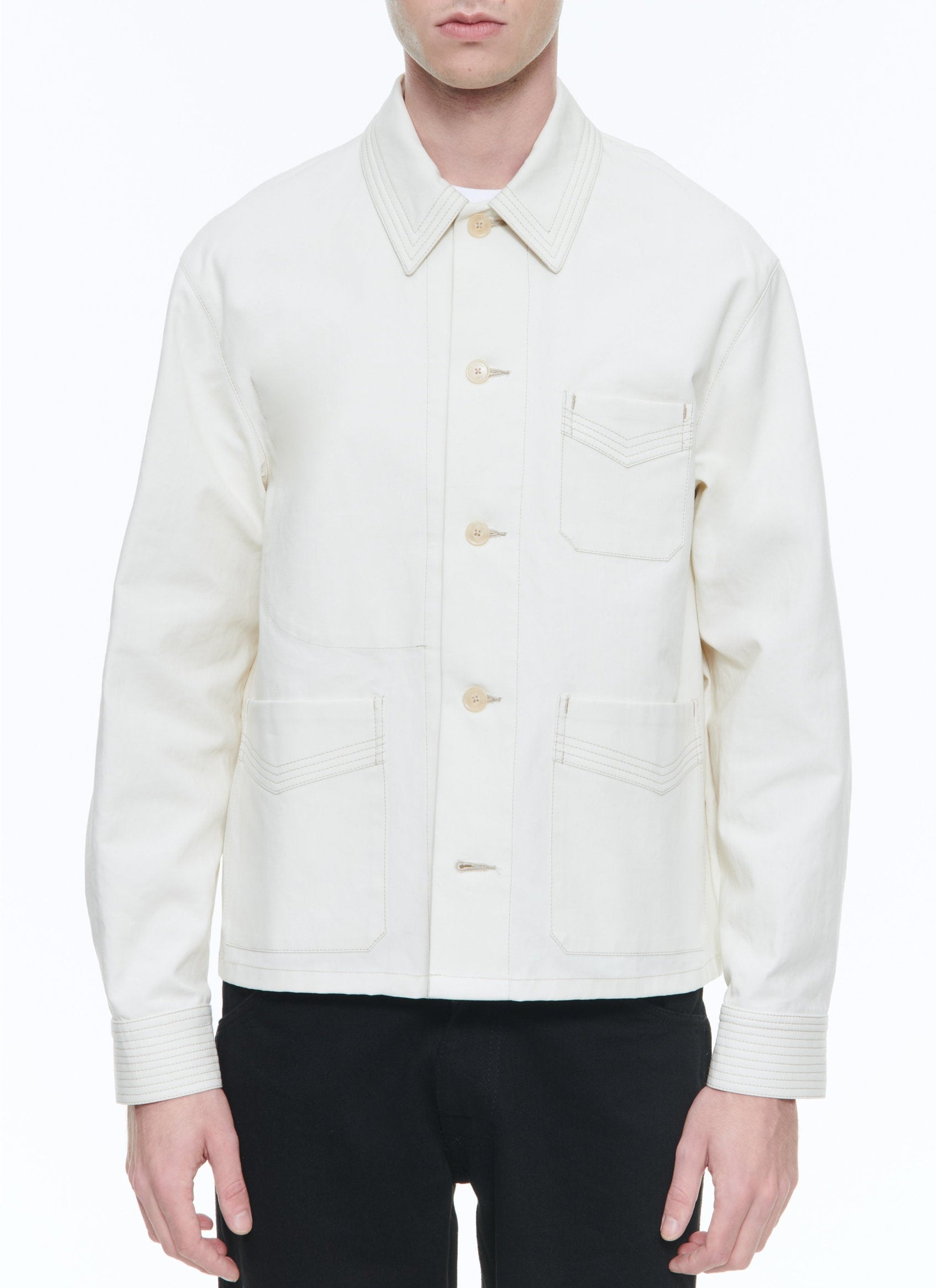 Blouson à surpiqûres contrastées.