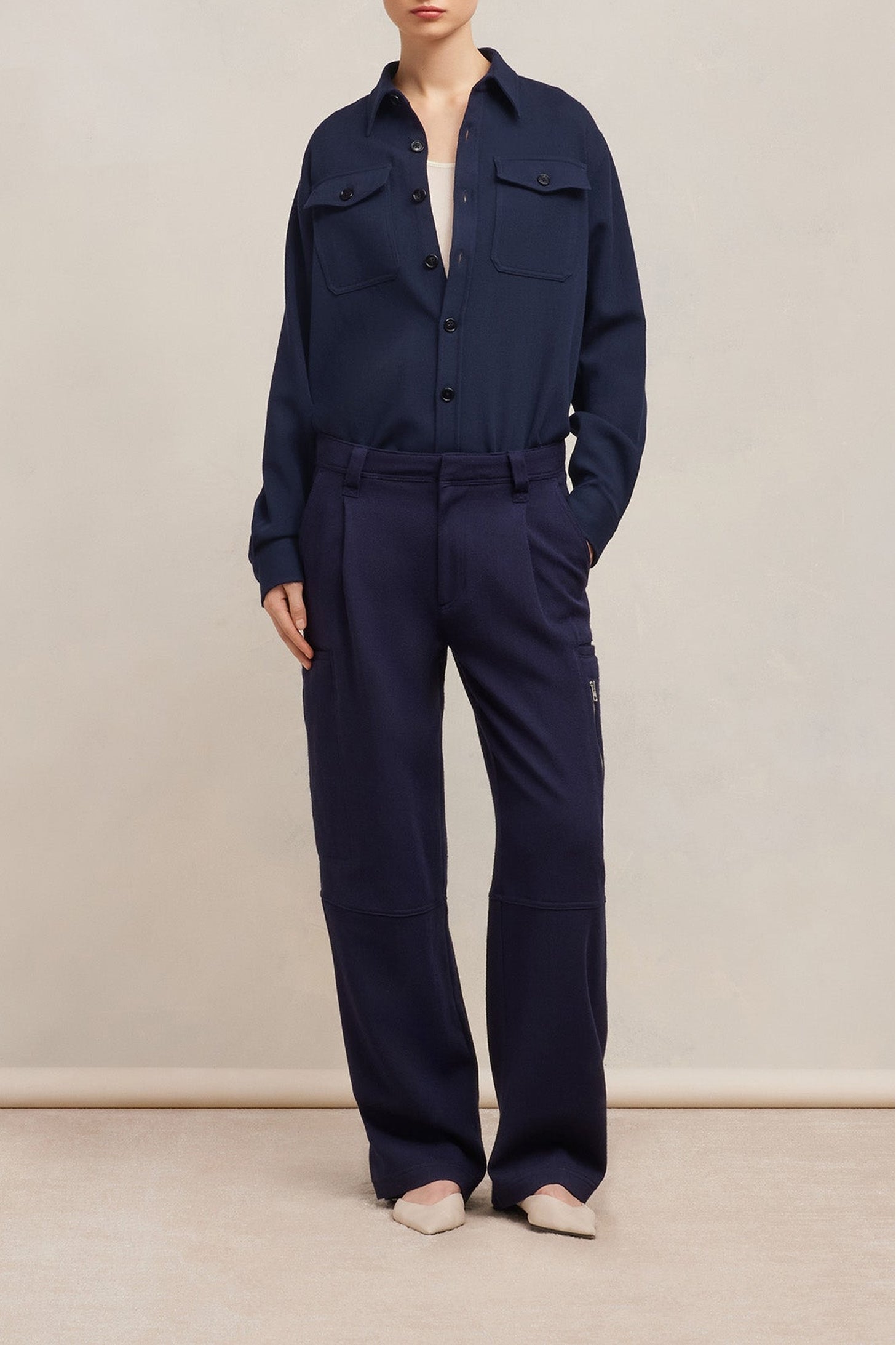 Surchemise en gabardine de laine.