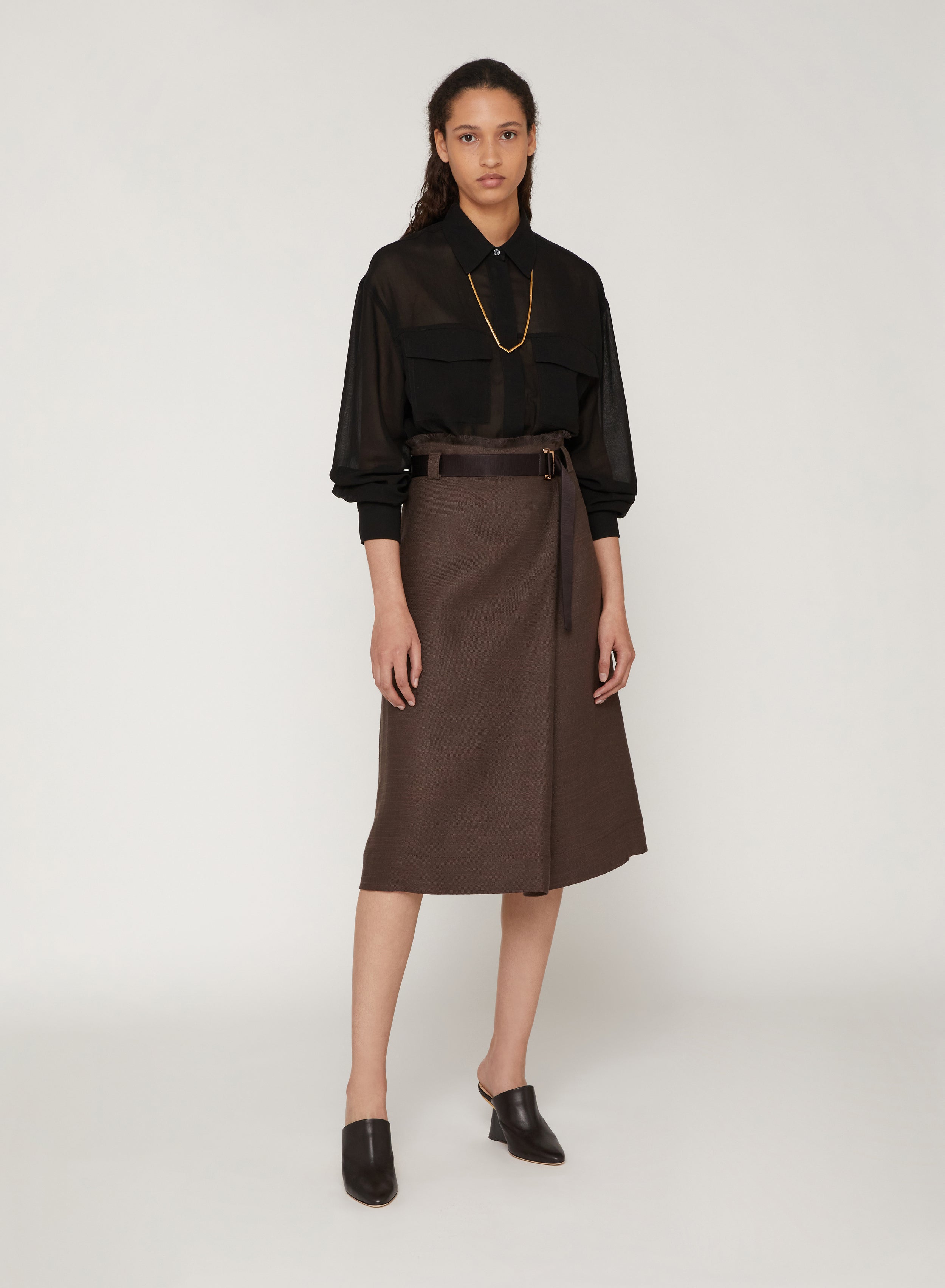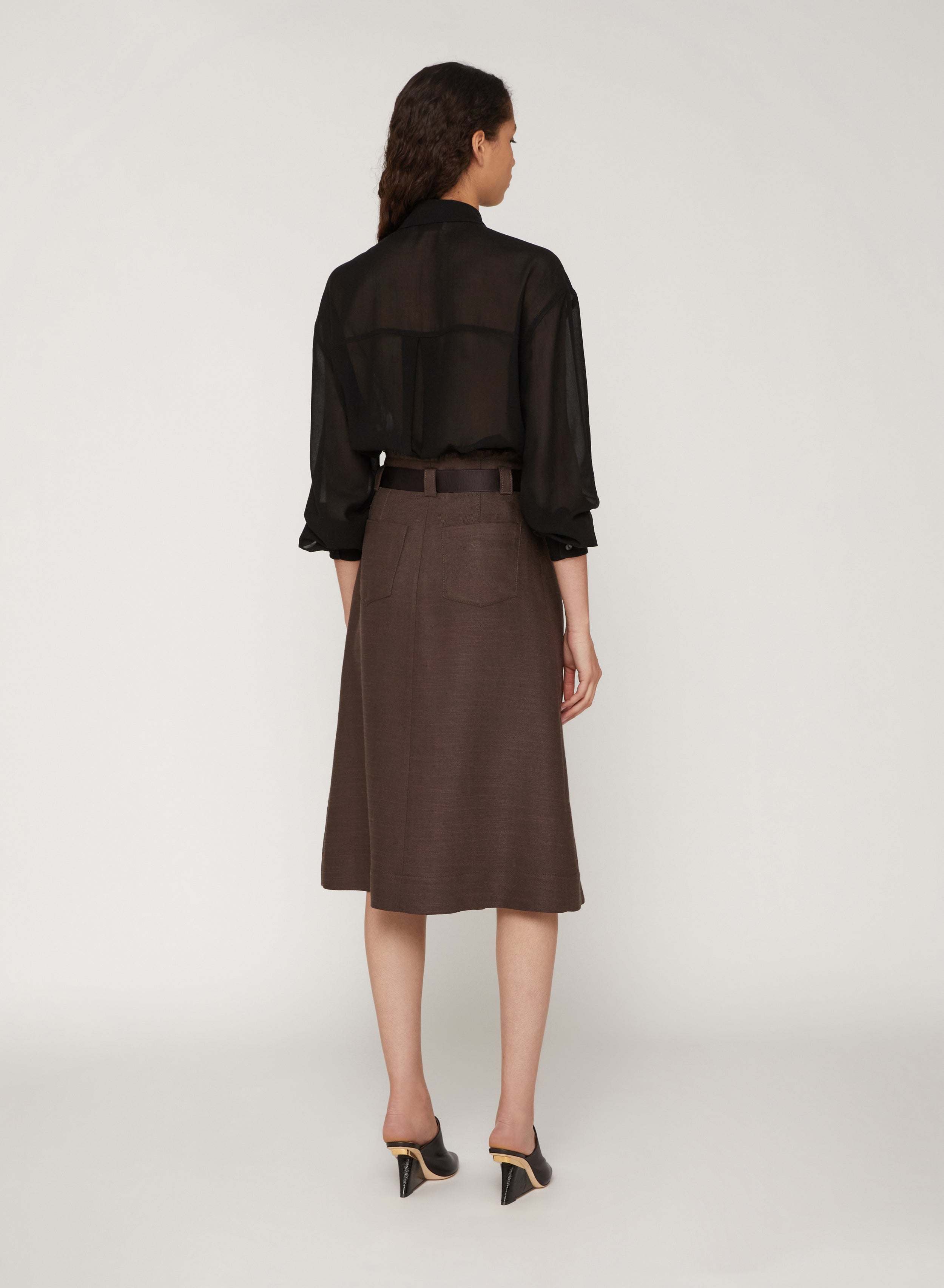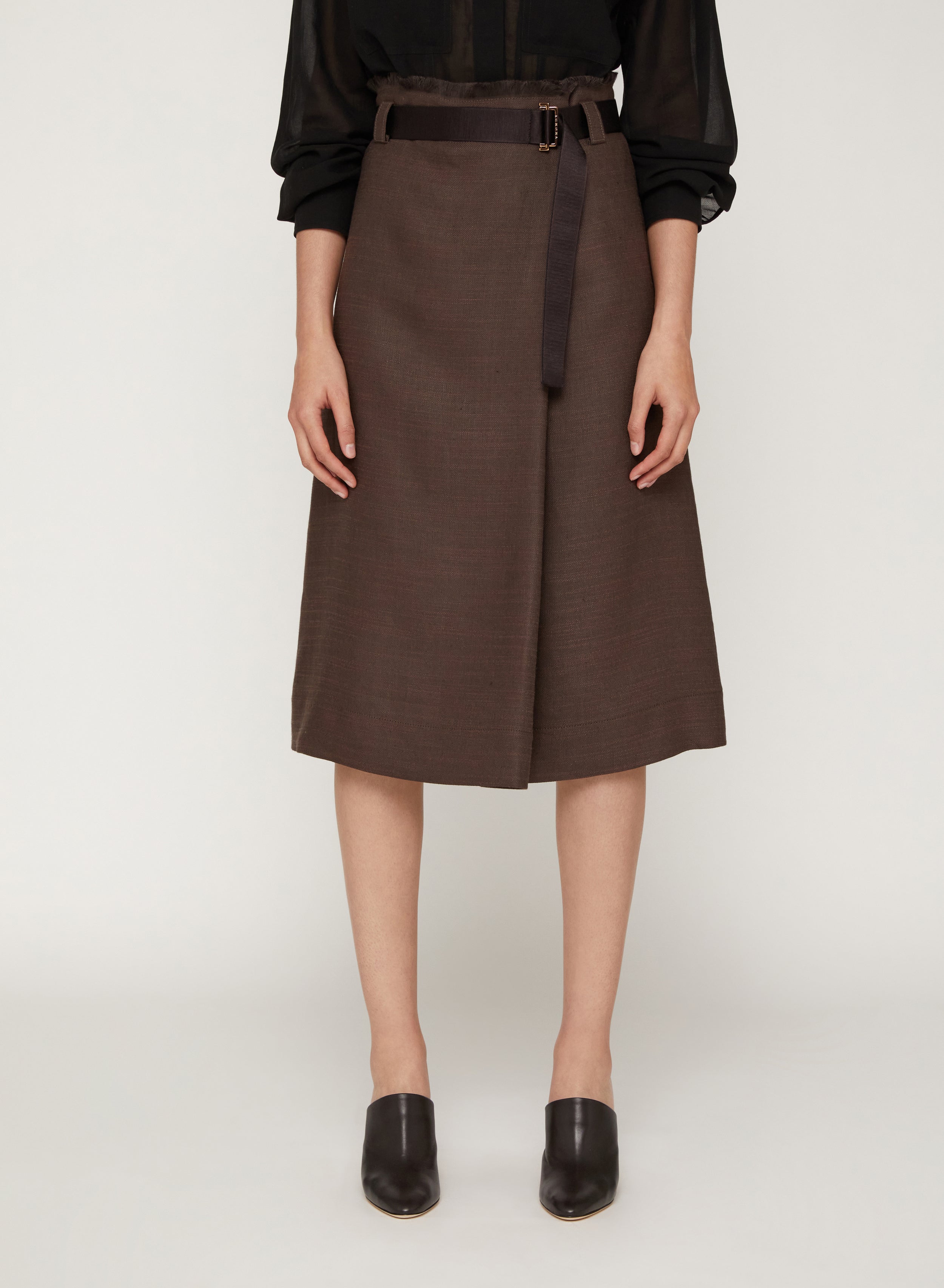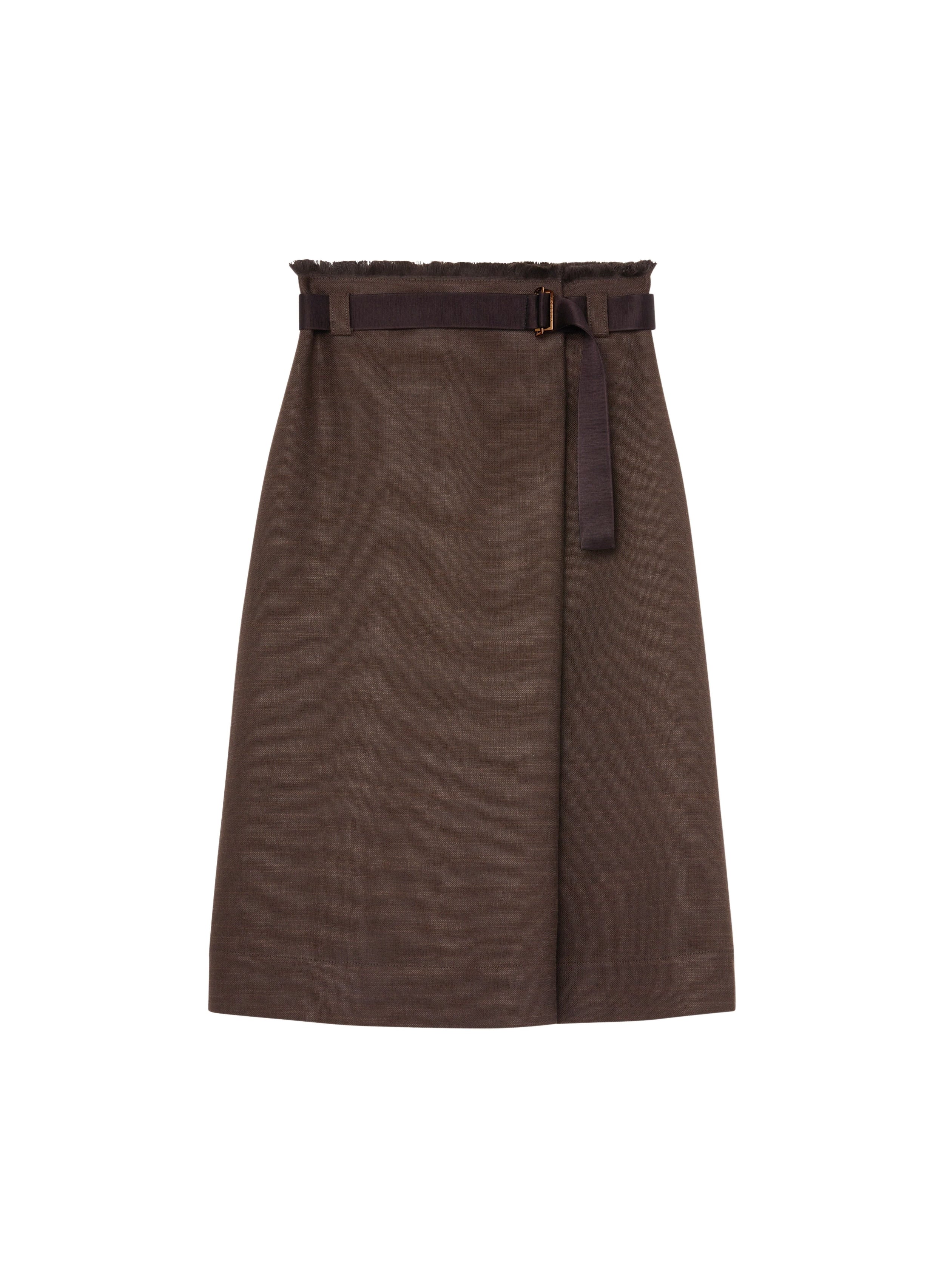 Cacao_1QTY // Jupe midi portefeuille ceinturée en lin