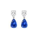 Boucles d'oreilles Burmalite™ taille poire blanche et bleu saphir sur argent rhodié