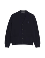 V-neck merino wool classic fit cardigan with embroidered Bold Fox Head patch to chest.