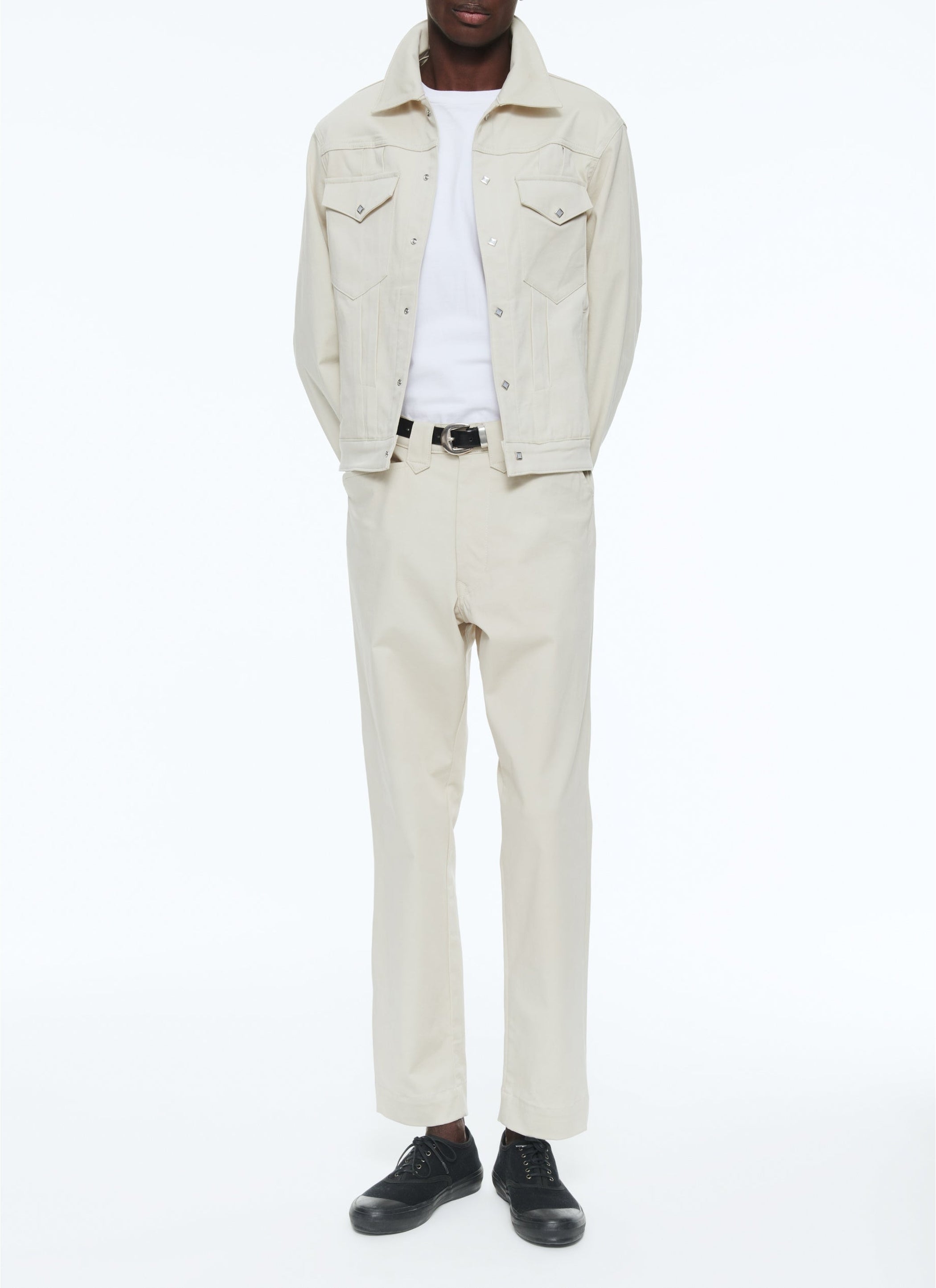 Western jacket in beige cotton sateen.