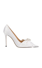 Silk & rhinestone Double Heart strap pumps with 9.5 cm heels, made in Italy.