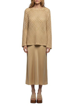 Sublimate your silhouette with this Perine openwork knit. This round-neck jumper, with slightly flared long sleeves featuring a delicate net stitch, embodies the soft, bohemian allure of the new MAX&MOI Spring-Summer collection.