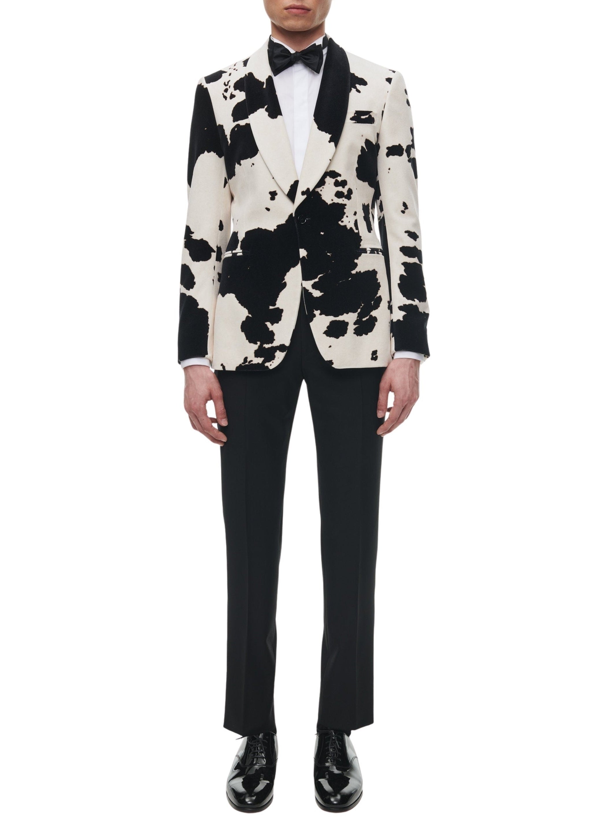 Fitted dinner jacket in wool and velvet.