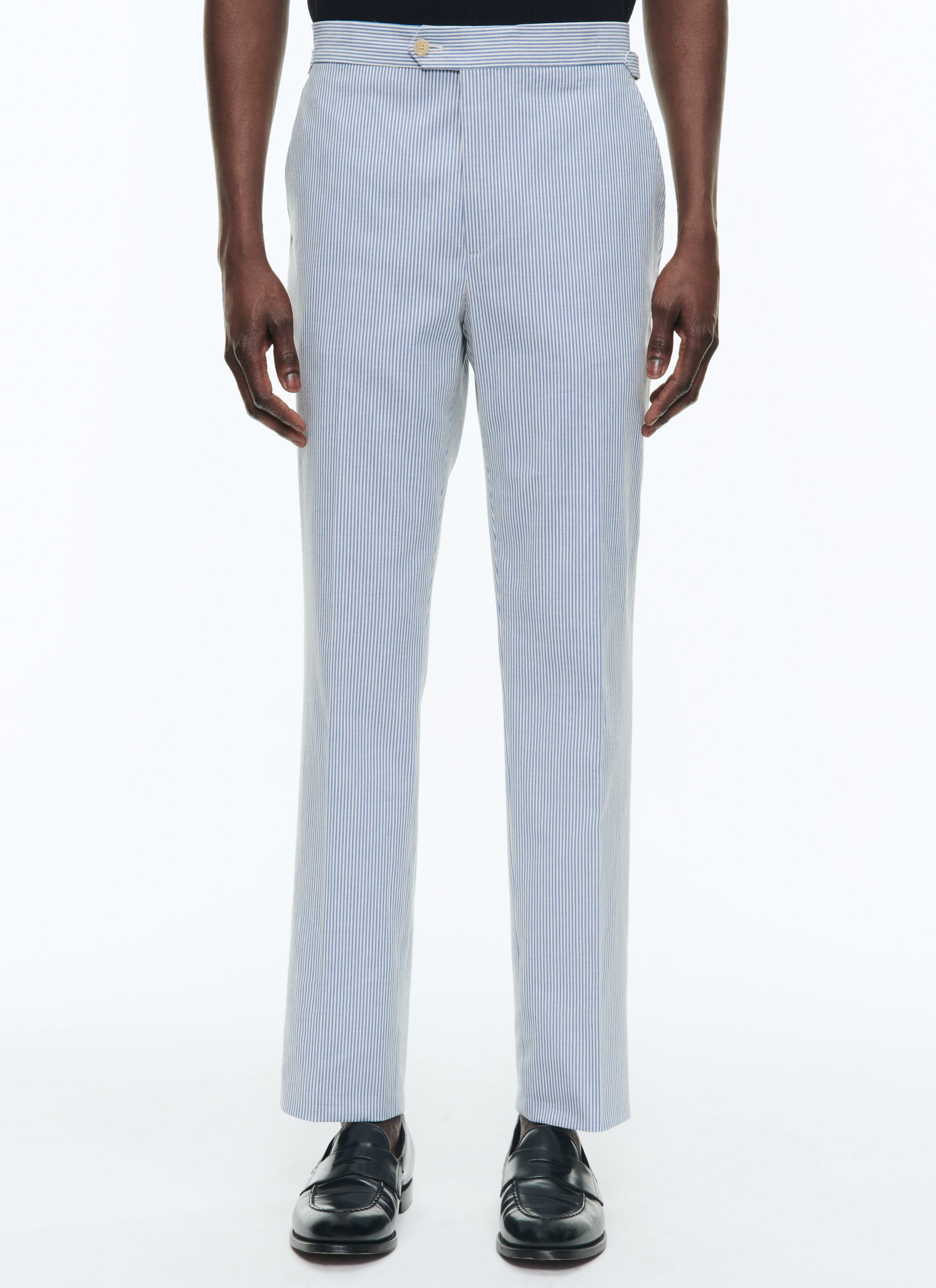 Striped wool seersucker trousers