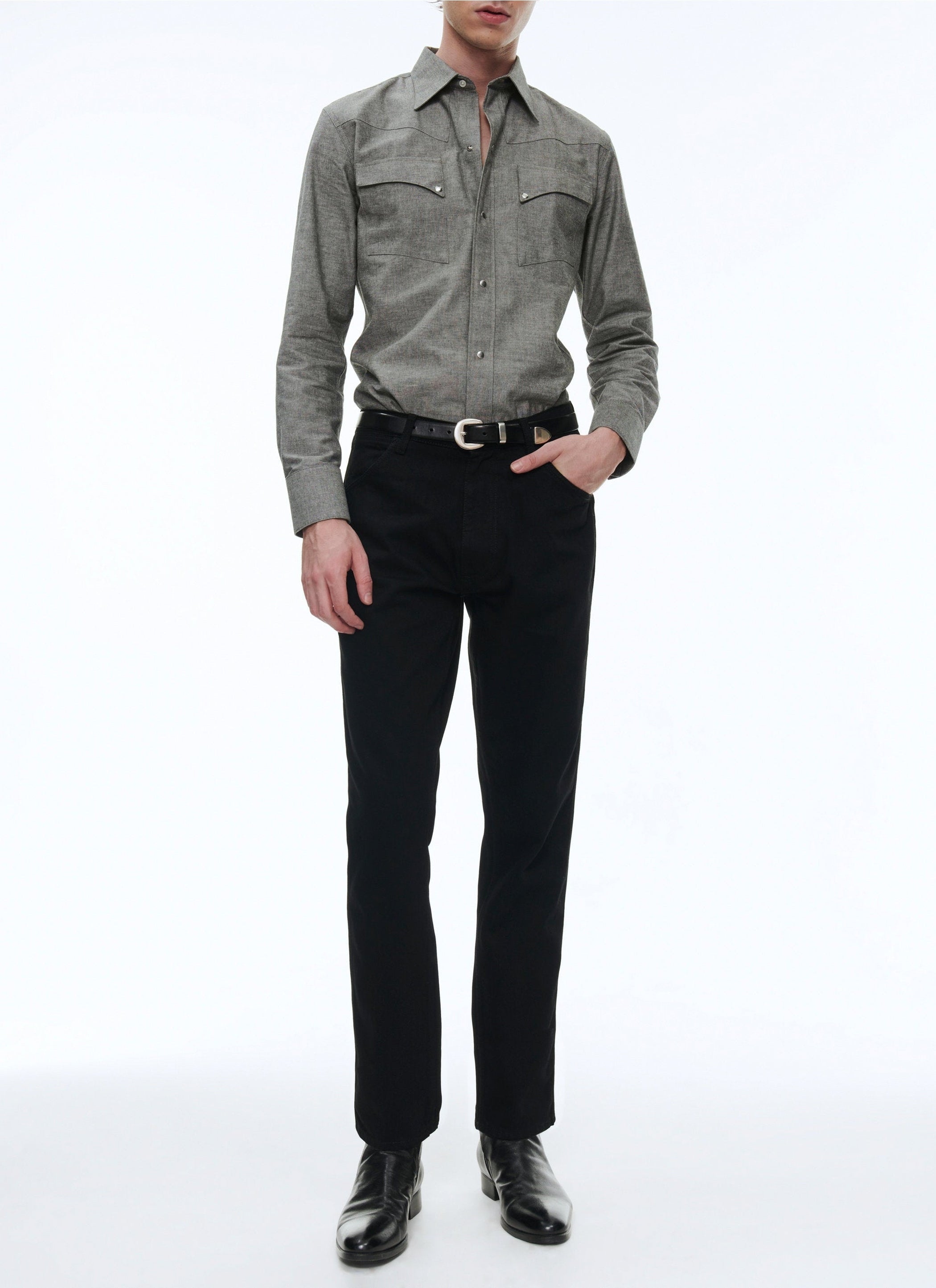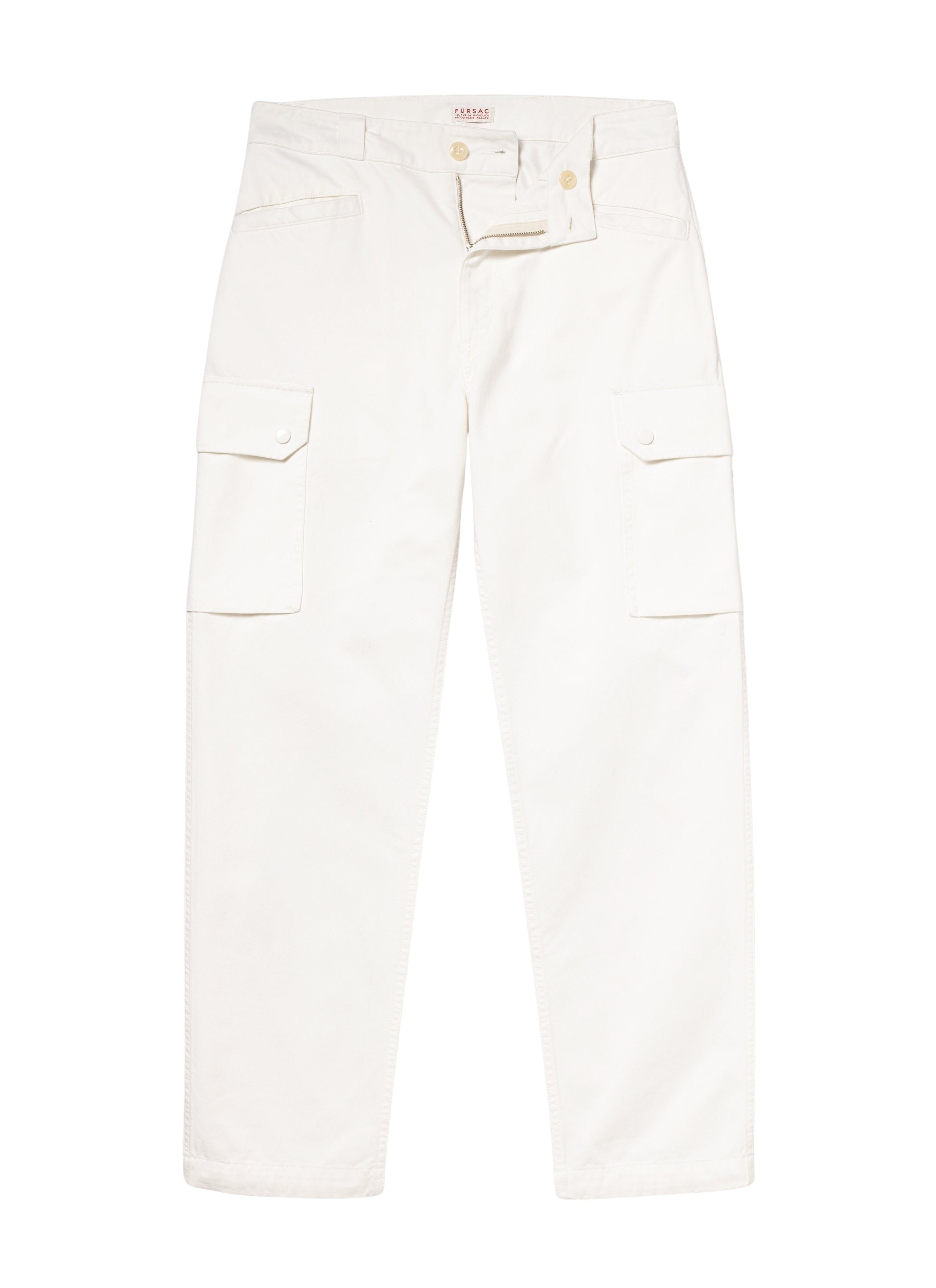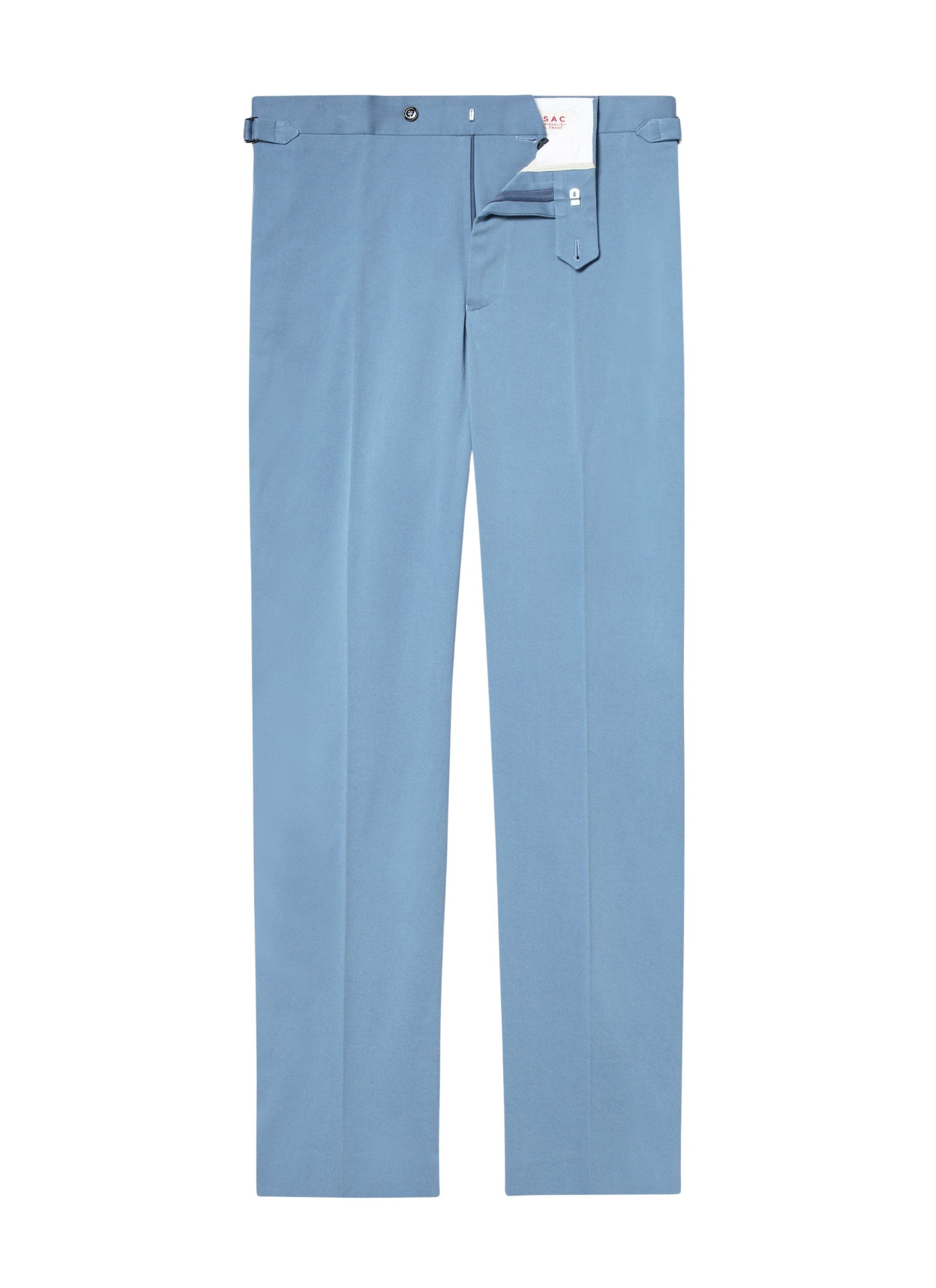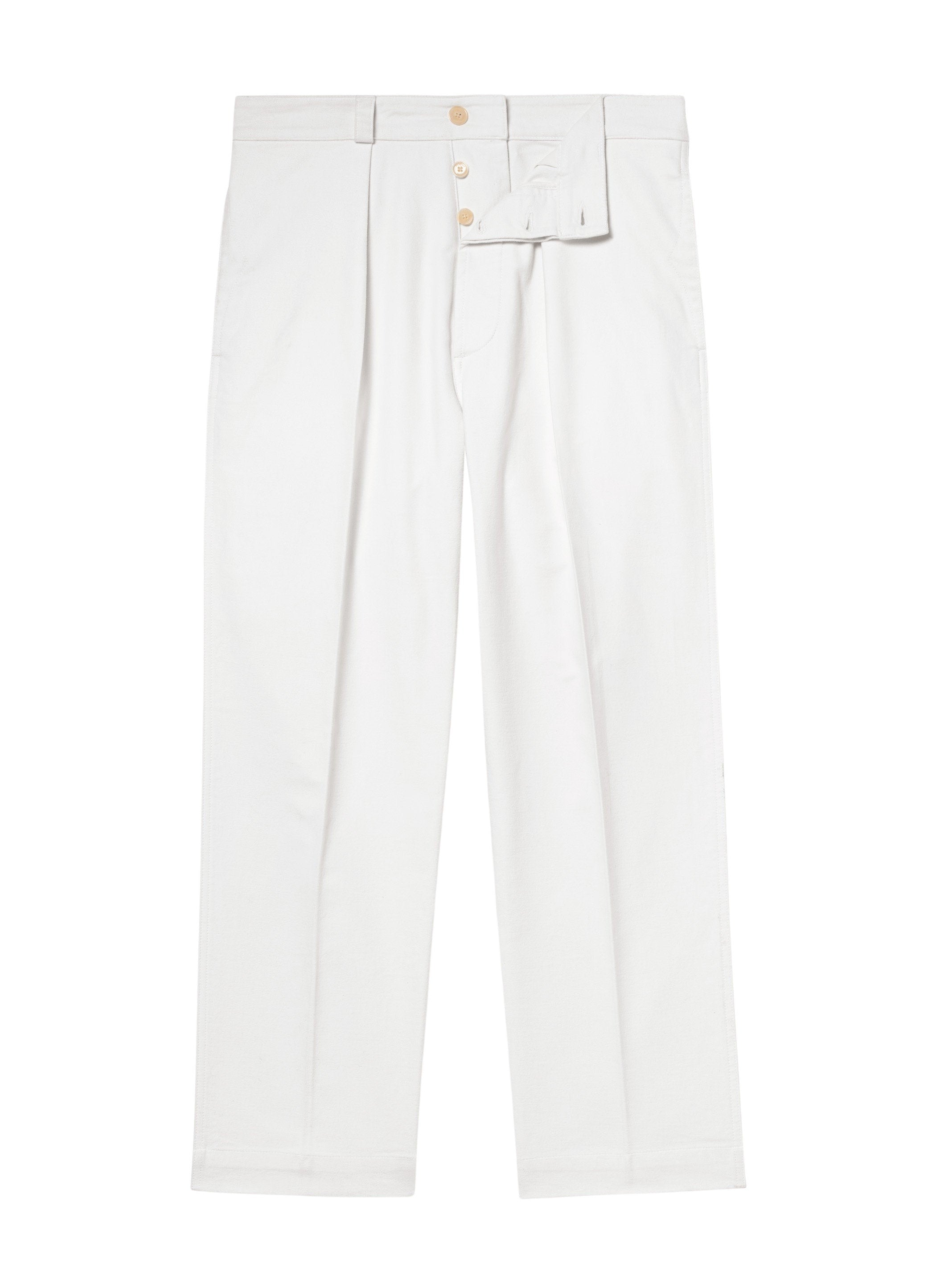 Trousers with visible button waistband