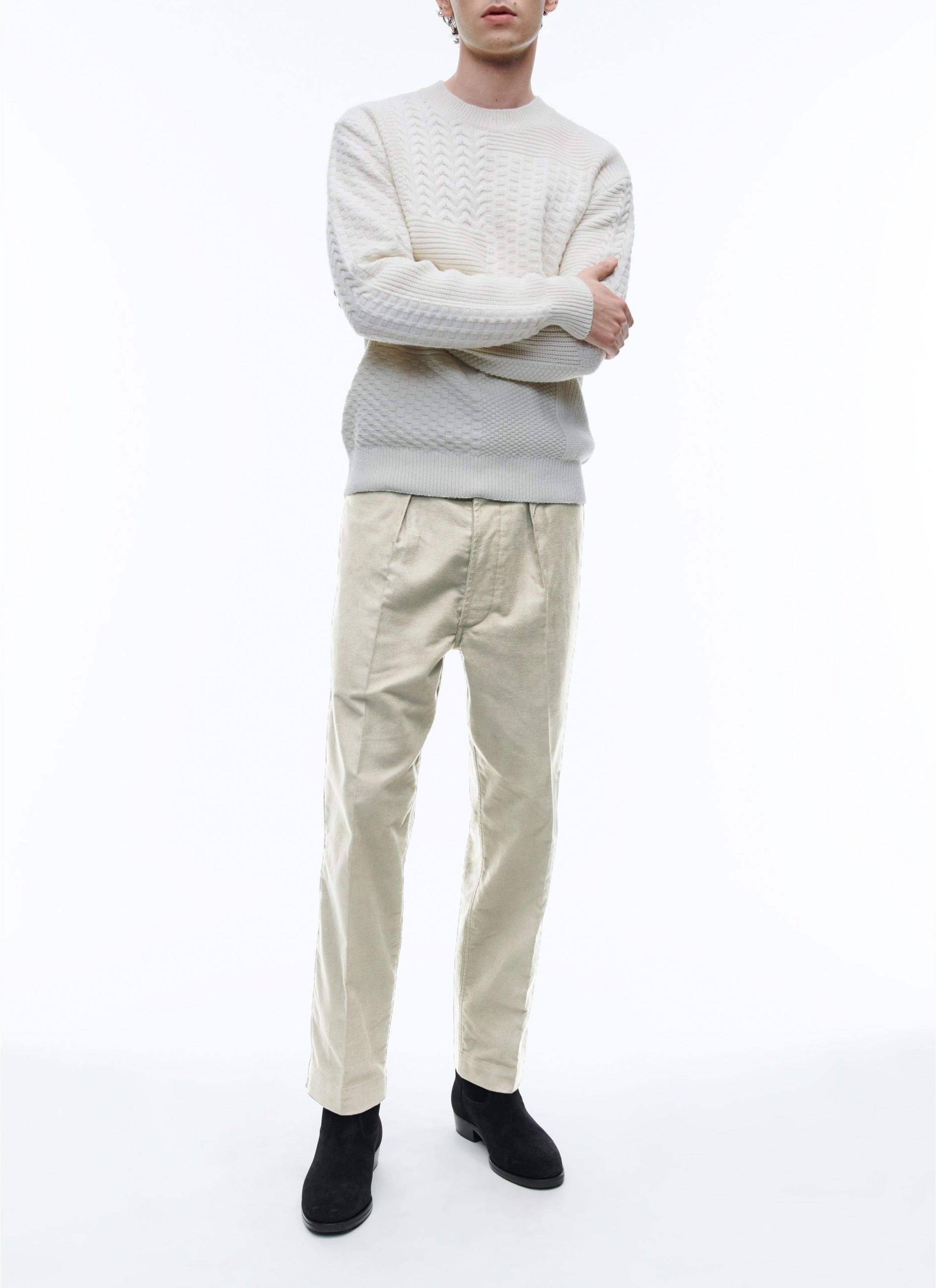 Chino in unbleached cotton moleskin.