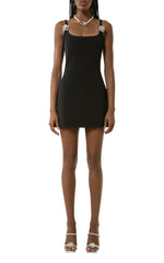 Flower short dress embellished with rhinestones