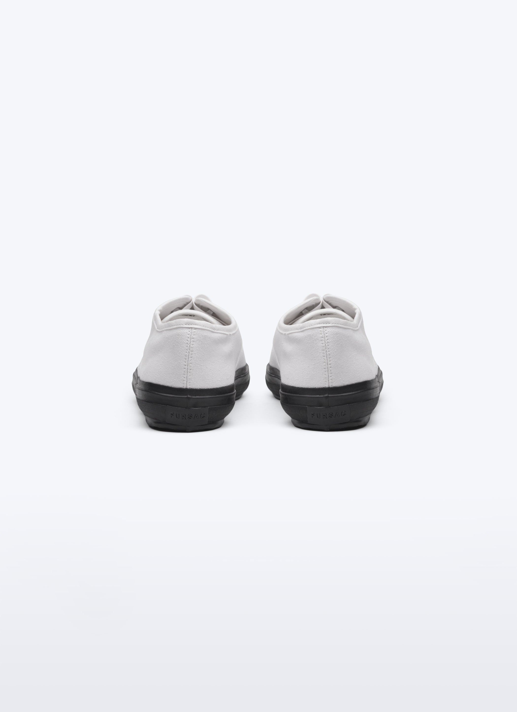 White cotton canvas trainers with vulcanised rubber soles.