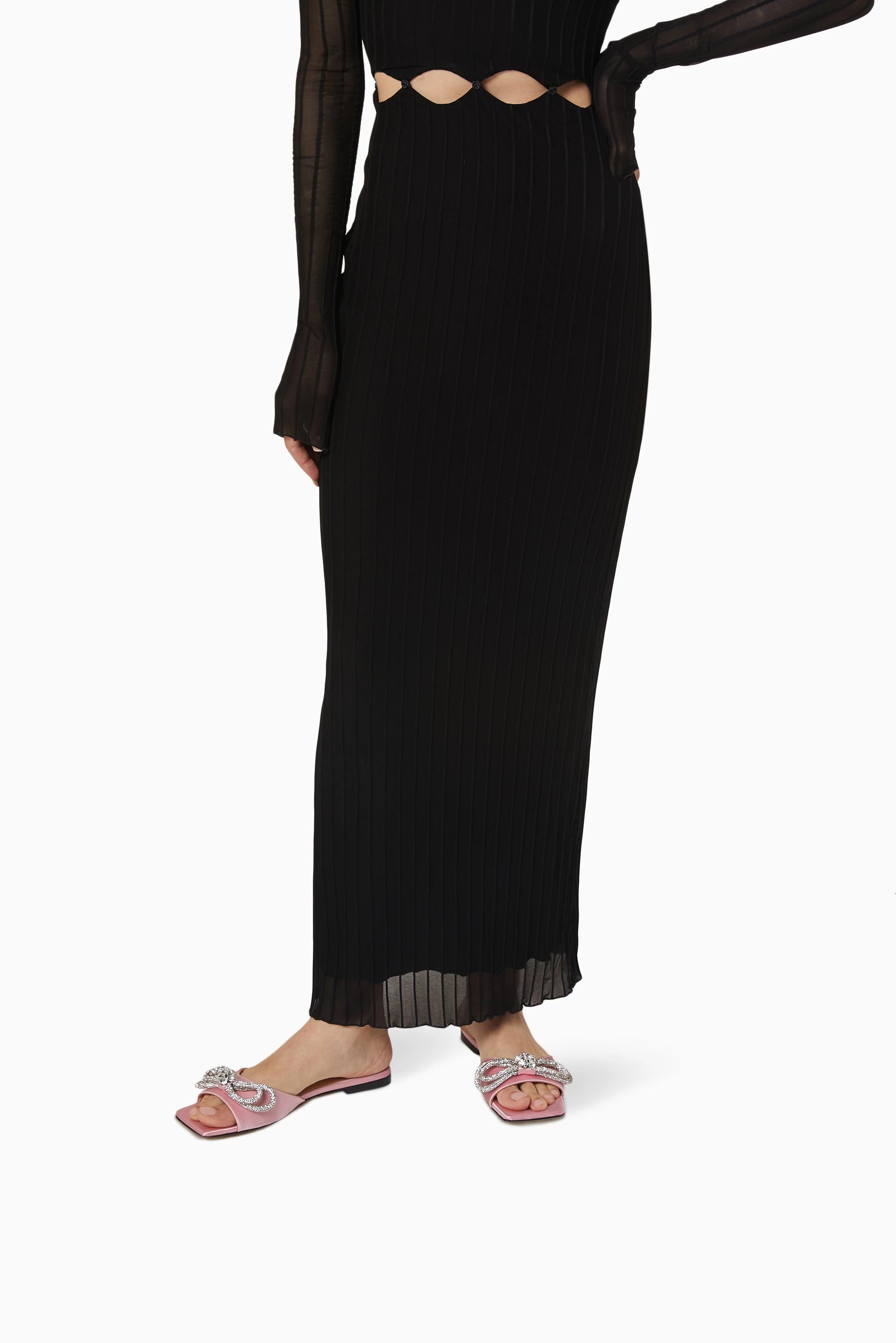 Silk & rhinestone Double Bow mules with a heel height of 0.5 cm, made in Italy.