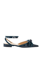 Patent leather & rhinestone Double Bow ballet flats with 1.5 cm heels, made in Italy.