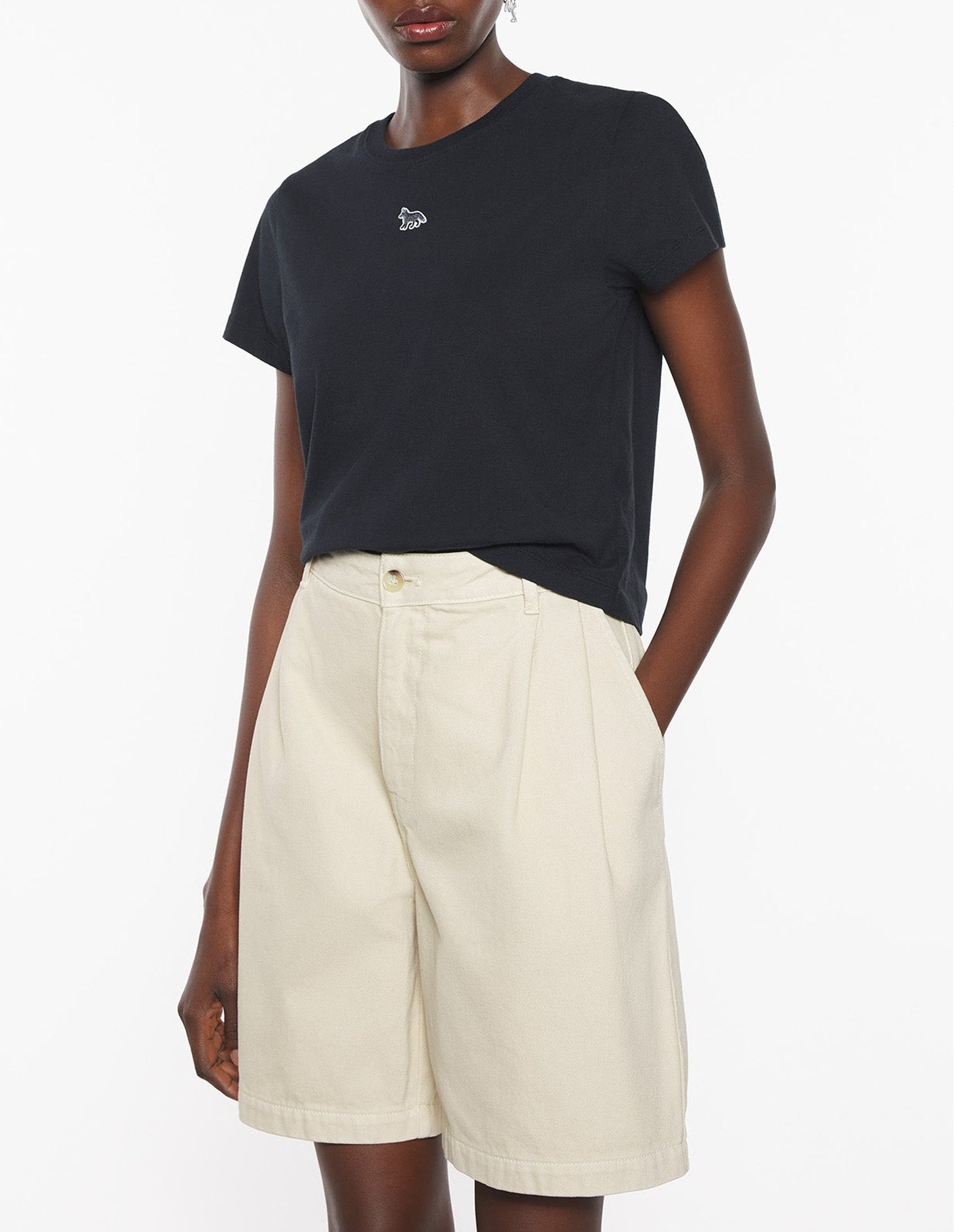 Fitted cotton t-shirt, cropped cut with embroidered Baby Fox patch.