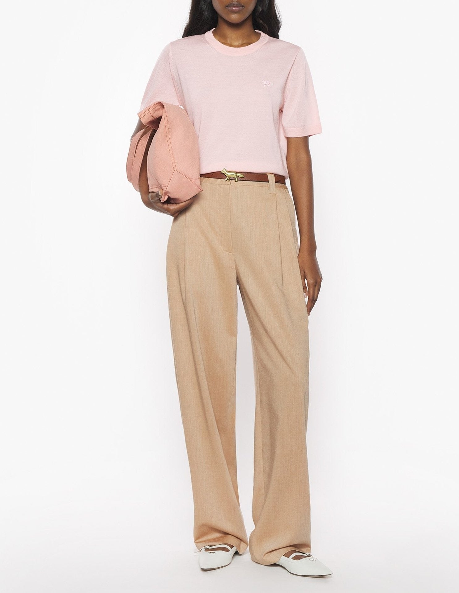 Short-sleeved merino wool T-shirt, regular fit with embroidered Baby Fox patch.