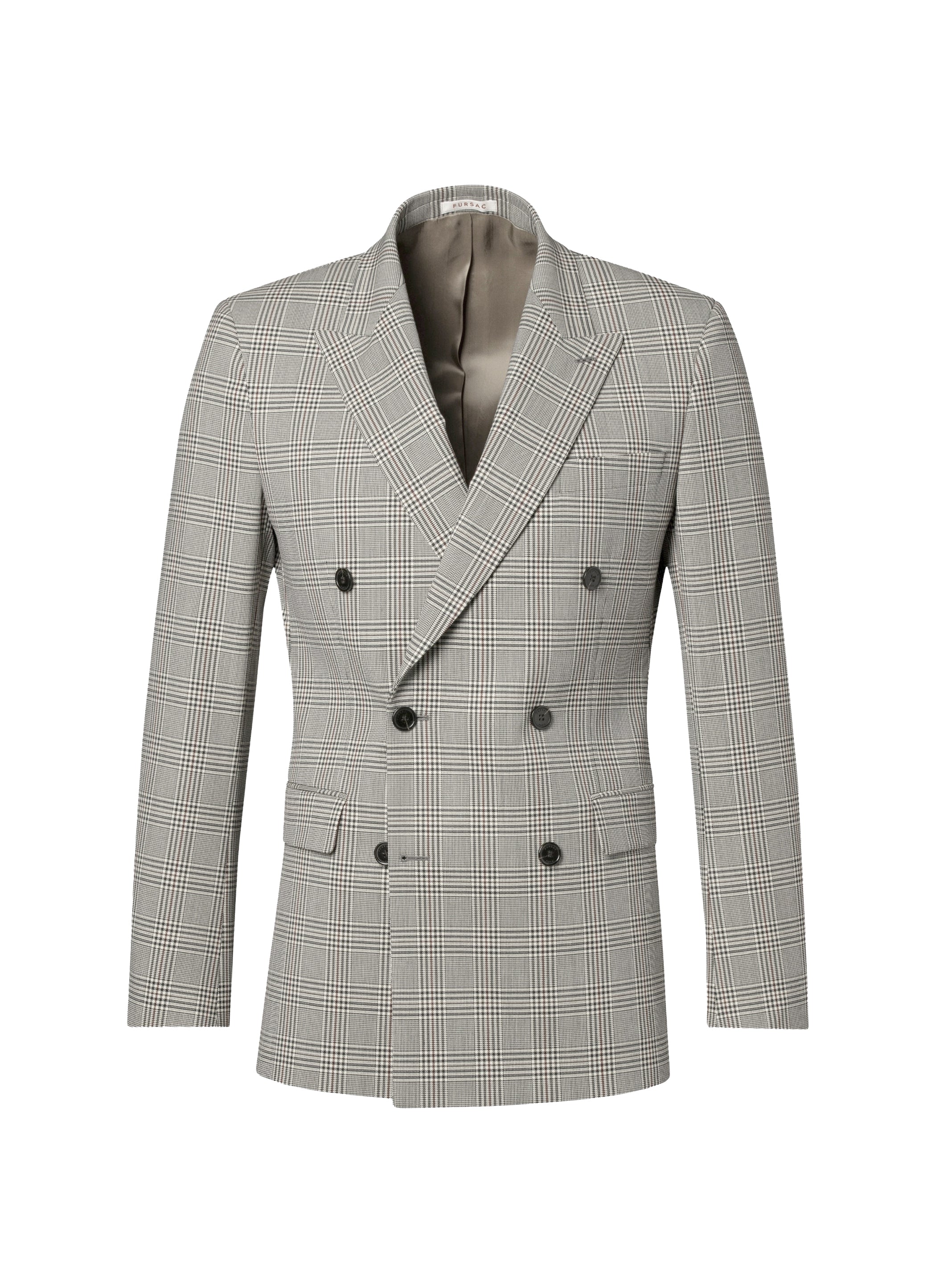Buttoned double-breasted suit jacket.