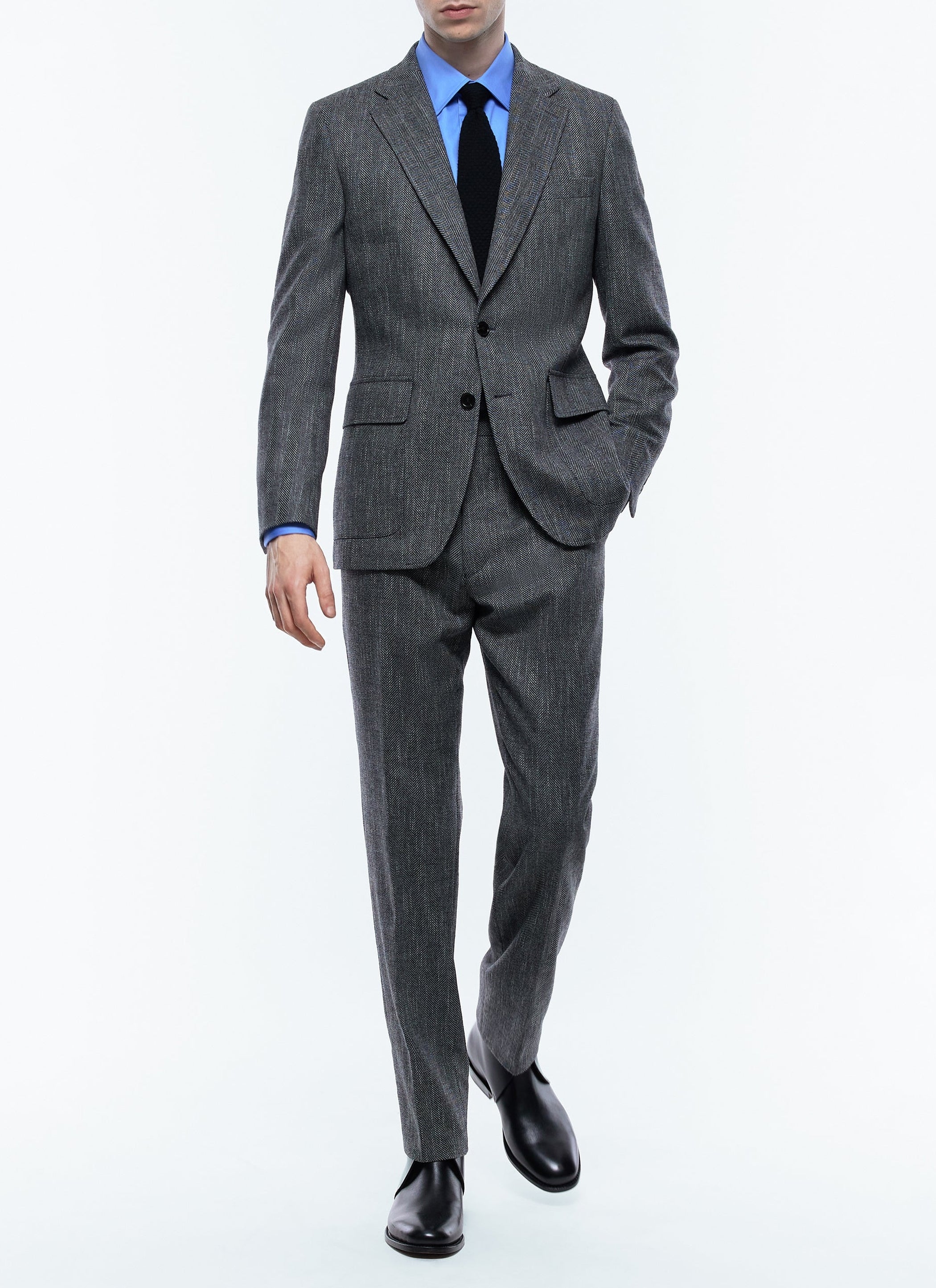 Fitted wool herringbone jacket.