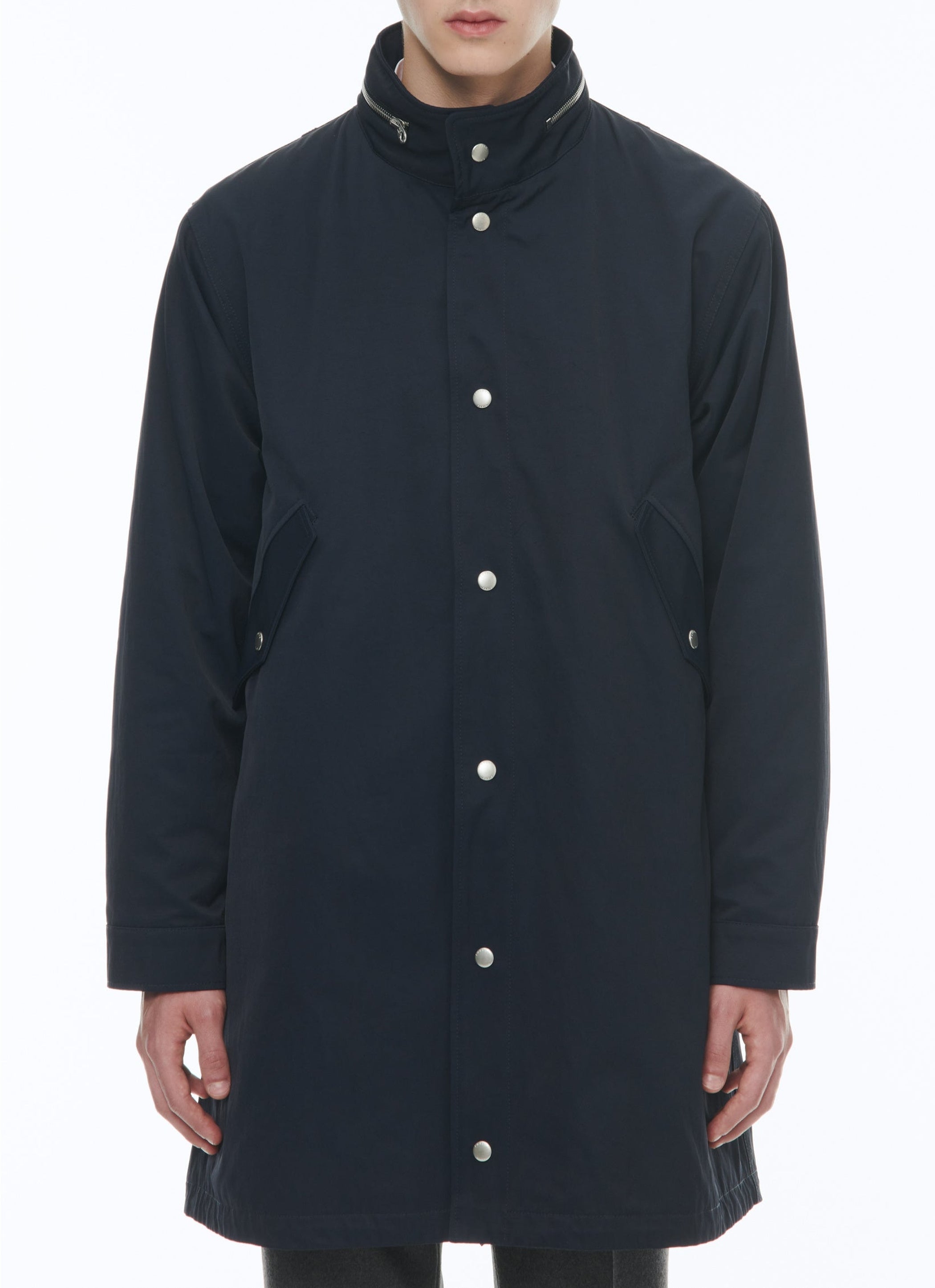 Quilted fishtail parka with stand-up collar