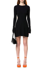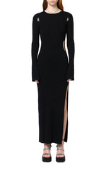 Bow midi dress with cut-outs adorned with rhinestones, made in Italy.