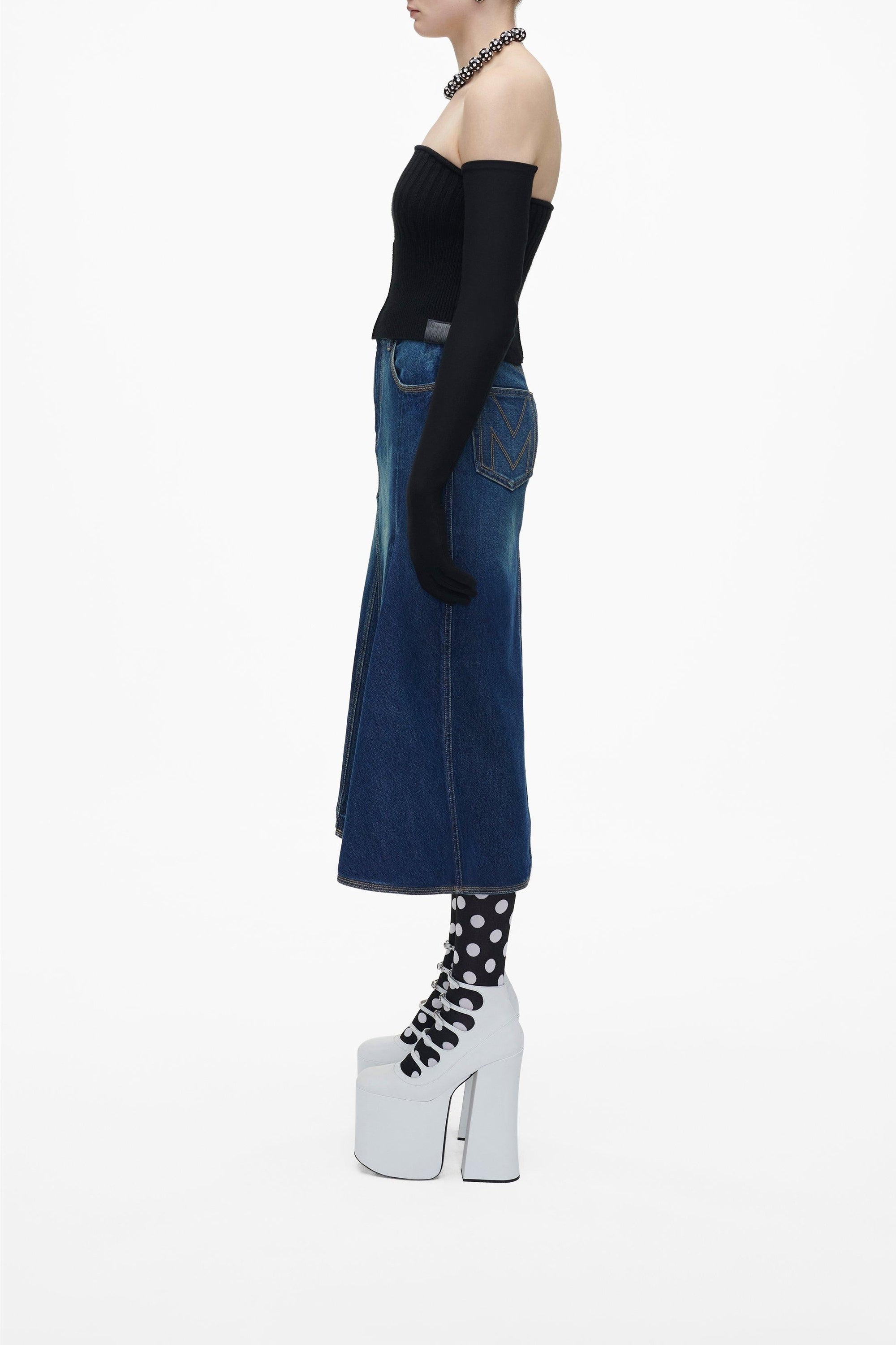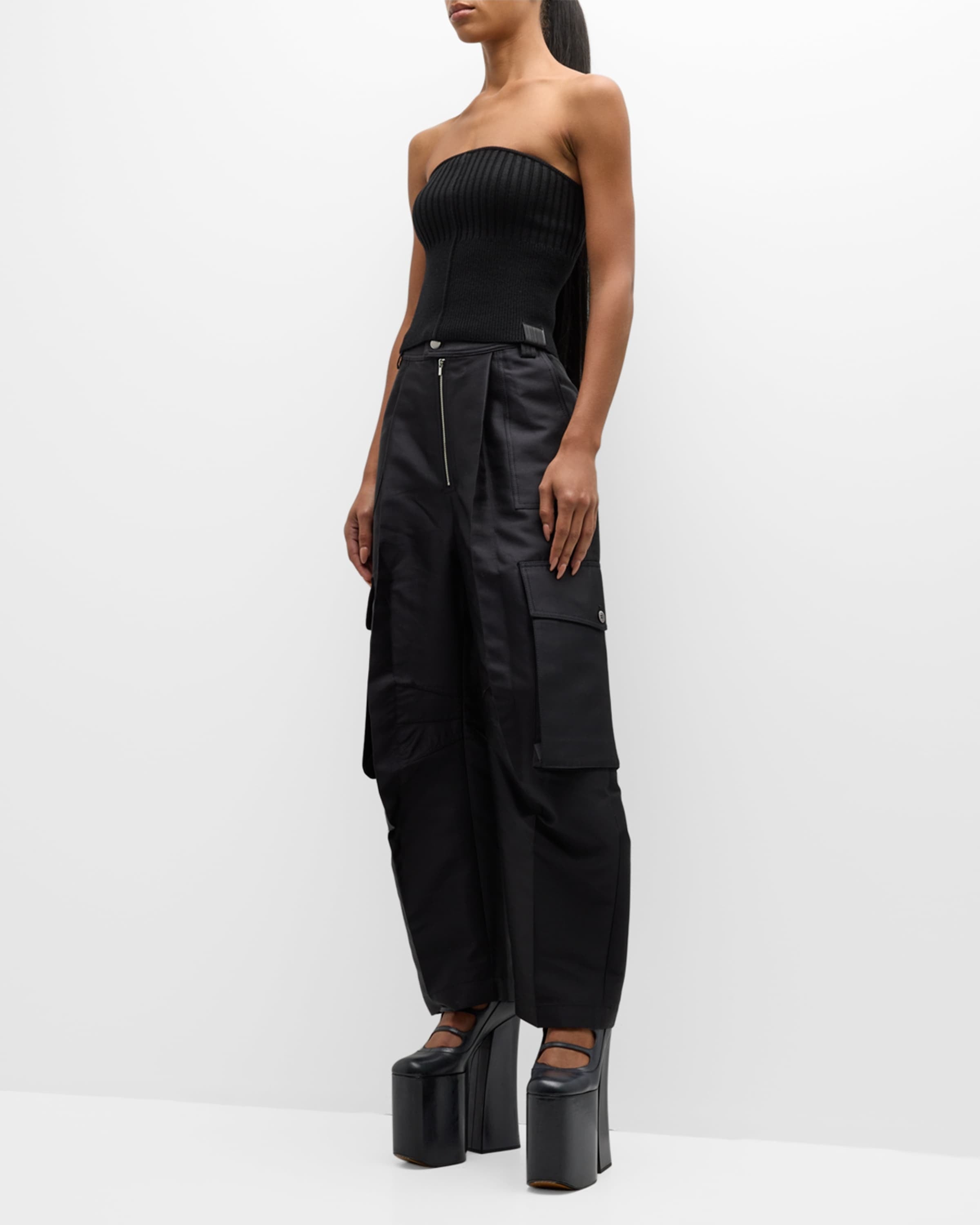 Ce haut tube en maille côtelée est conçu avec un corsage en forme et une encolure sculptée, et se termine par un écusson en cuir emblématique.