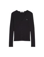 Short-sleeved polo shirt in fine wool-cotton rib, slim fit, embroidered patch Tonal Baby Fox.