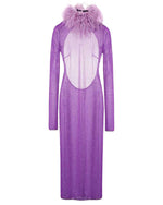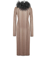 Robe midi à col plumé dos nu