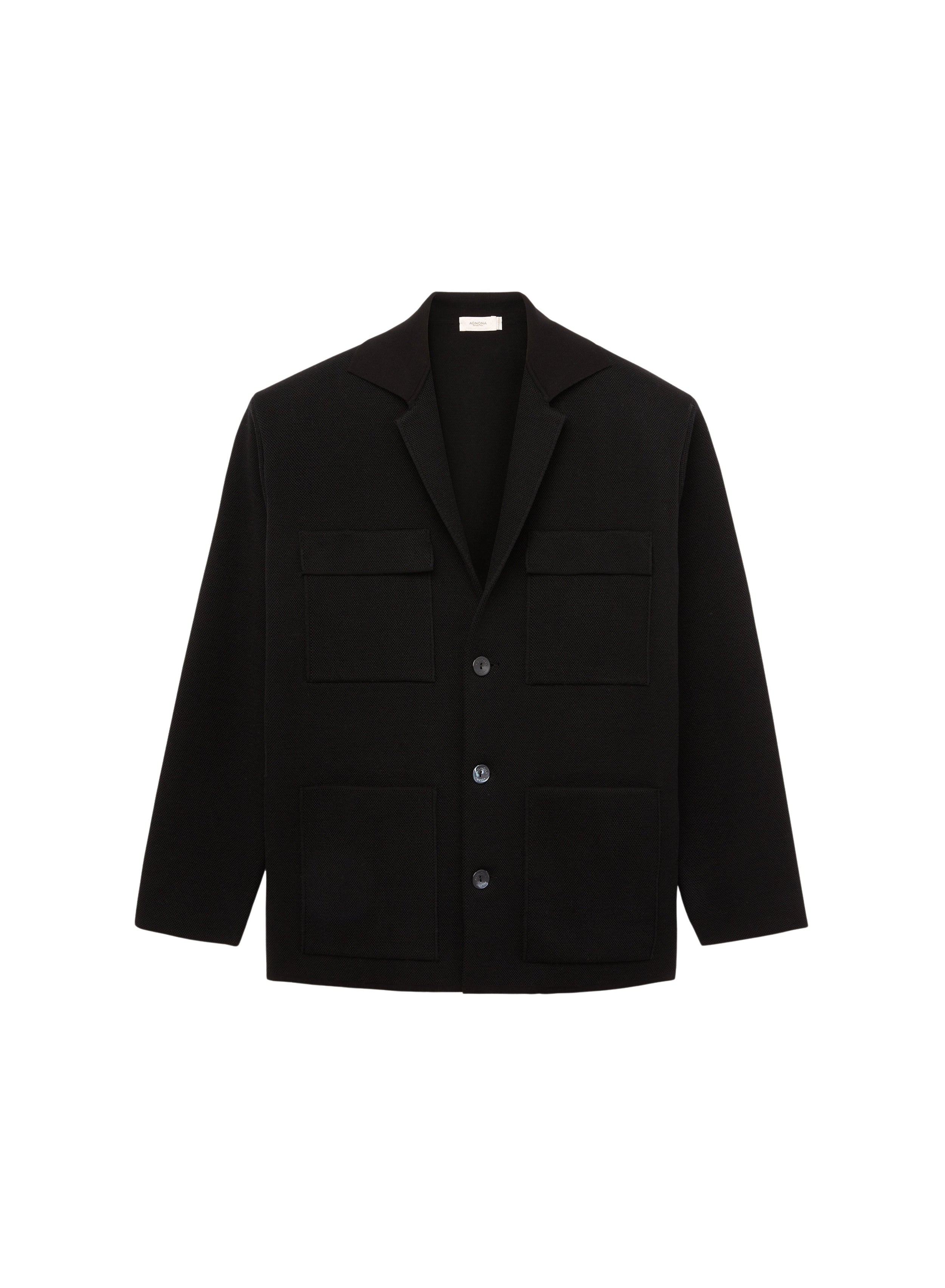 Veste droite à poches en soie mélangée, confectionnée en Italie.