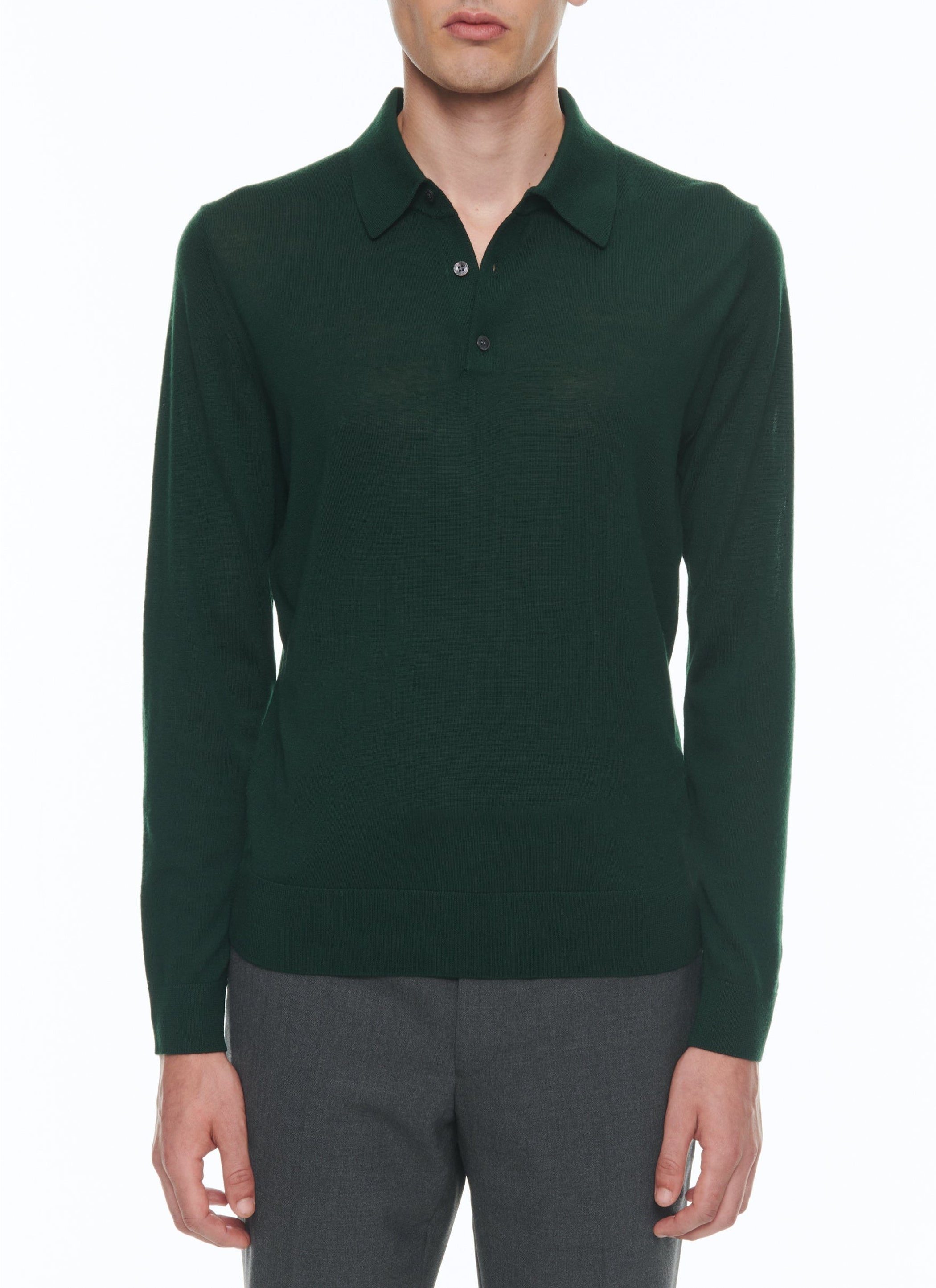 Polo vert forêt à manches longues en laine mérinos .