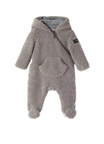 Capuche fixe ornée d'amusantes oreilles appliquées, fermeture à glissière sur le devant, poches latérales en appliques douces avec de délicats inserts décoratifs en tissu qui enrichissent le vêtement.