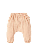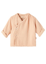 Pyjama en molleton de coton bio gaufré rose poudré avec fermeture par bouton-pression sur le devant et visage de chat appliqué sur le côté.