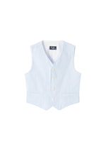Veste de sport réversible en crépon à rayures bleu clair et blanc et en taffetas nylon bleu sur l'autre face.