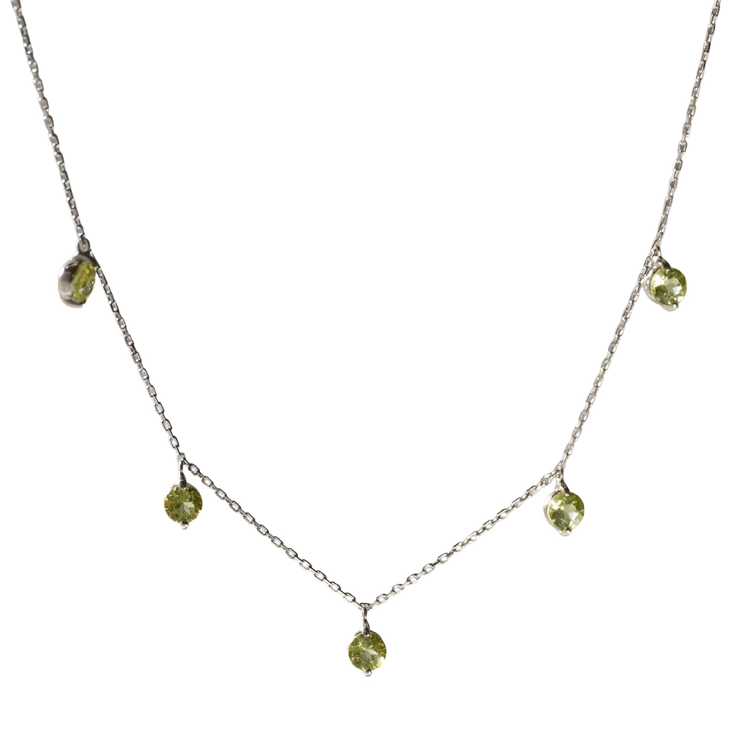 1qty NEW / Collier avec 5 Peridot -Blanc